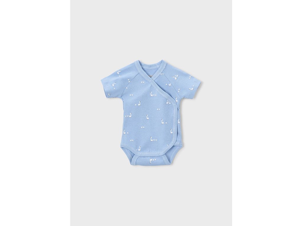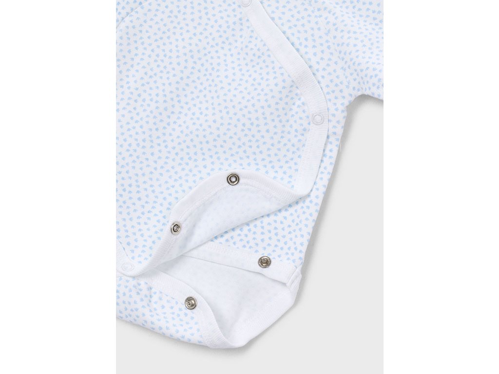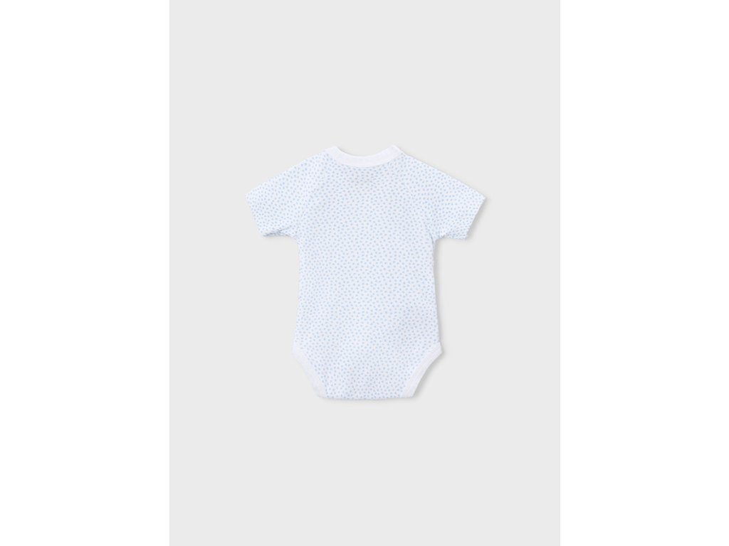 Roztomilý set dvou kojeneckých body Mayoral v jemných modrých tónech. Jedno body je v pastelově modré barvě s hravým potiskem, druhé bílé s decentním vzorem. Díky překládanému zapínání na druky je oblékání miminka snadné a pohodlné. Měkký, pružný materiál je příjemný na nošení a ideální pro citlivou dětskou pokožku.