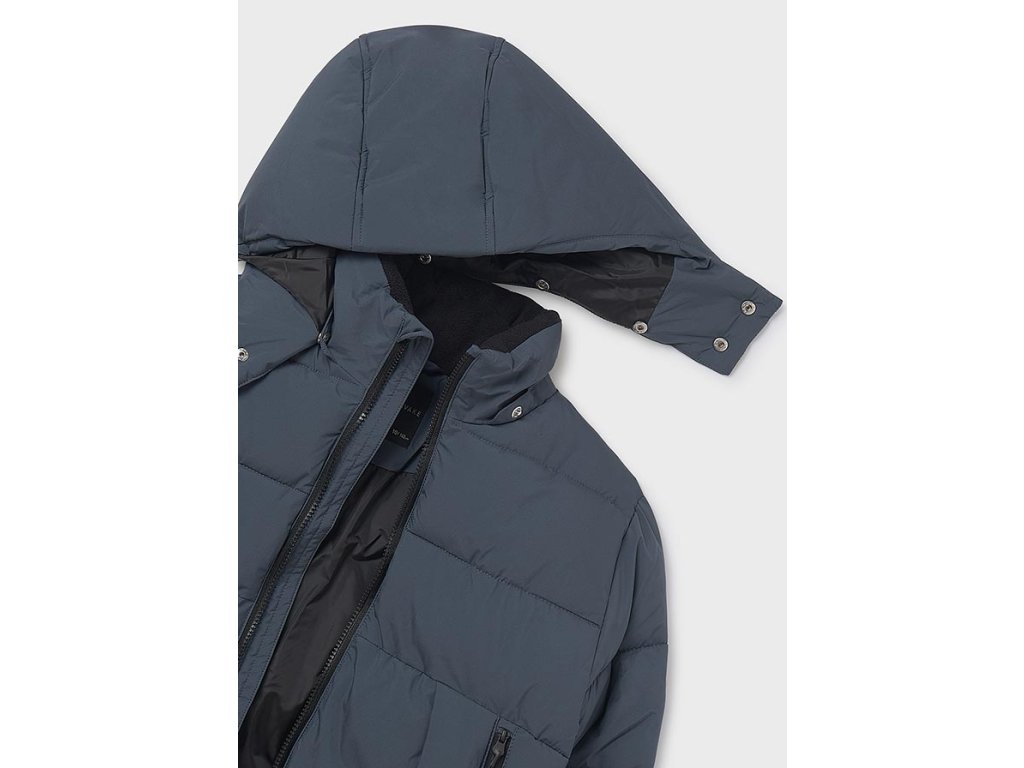 Stylová zimní bunda z kolekce Nukutavake by Mayoral je ideální volbou pro chladné zimní dny. Moderní prošívaný design v tmavě modrém odstínu vypadá skvěle a zároveň poskytuje maximální pohodlí a hřejivost. Bunda má praktickou odepínací kapuci, zapínání na zip kryté légou a dvě prostorné kapsy na zip, do kterých si kluci mohou schovat ruce nebo drobnosti.