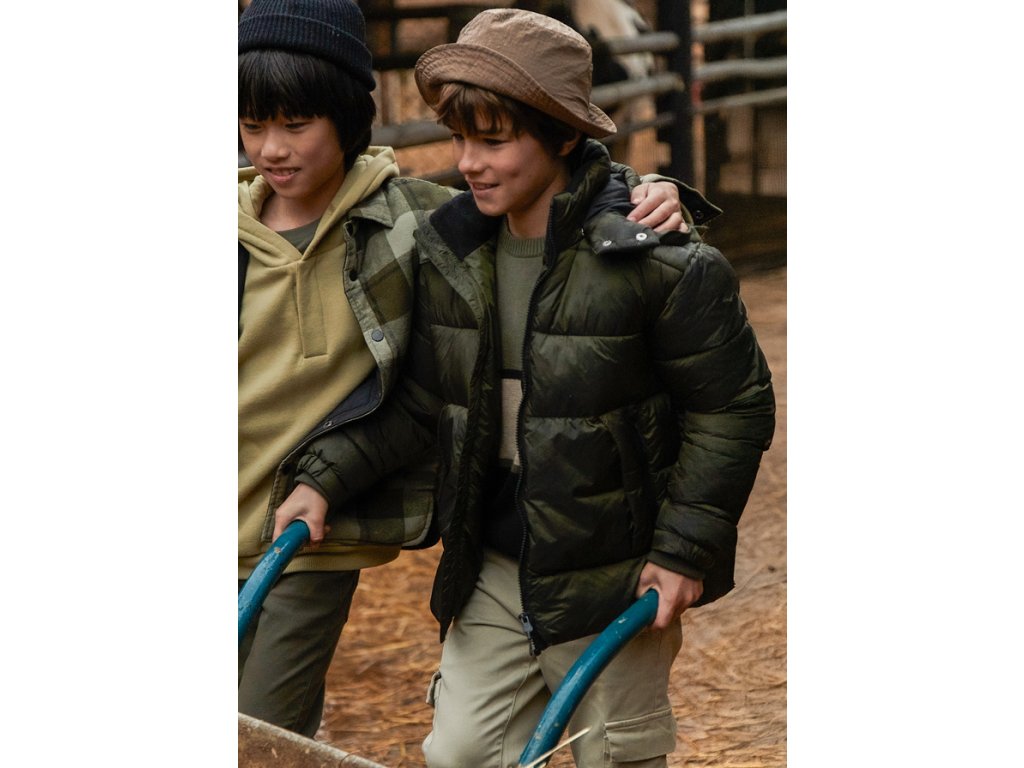 Stylová chlapecká zimní bunda Nukutavake v tmavě zelené barvě je ideální na chladné dny. Prošívaný design s hřejivou výplní zajistí pohodlí a ochranu před zimou. Bunda má odepínací kapuci, praktické kapsy na zip a zapínání na zip s krycí légou. Perfektní volba do školy, na hřiště i volný čas – kombinace moderního vzhledu a funkčnosti.