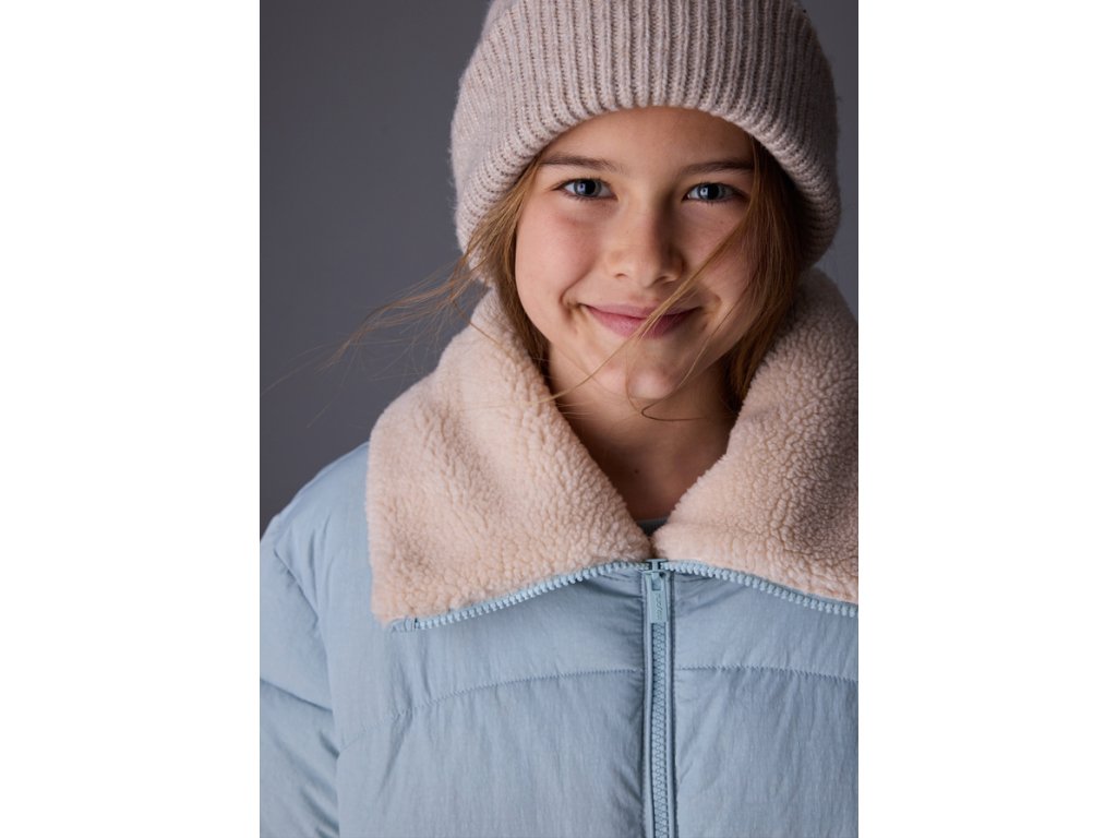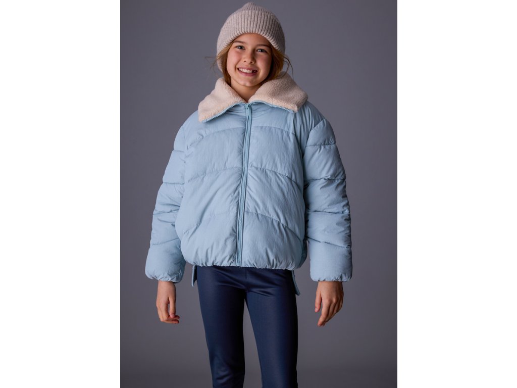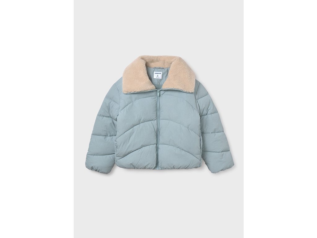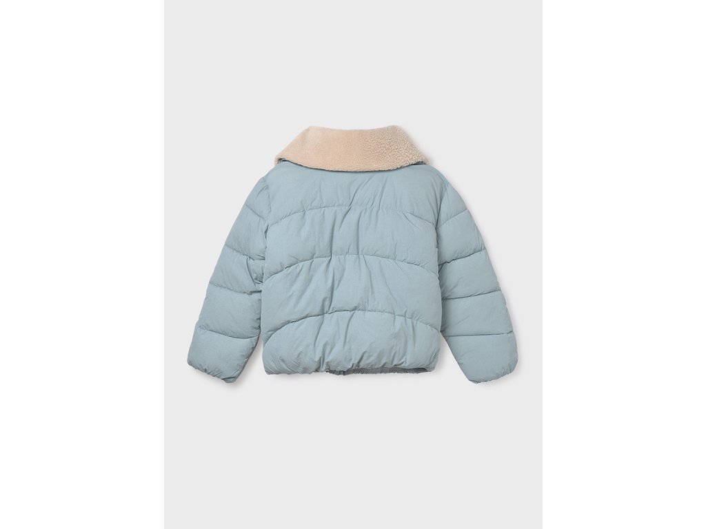 Stylová a hřejivá dívčí zimní bunda Mayoral v jemně modré barvě, ideální pro chladné zimní dny. Bunda má pohodlný volnější střih, zapínání na zip a měkký kožešinový límec v krémové barvě, který chrání krk před zimou a dodává kabátu šmrnc. Prošívaný design zajistí lepší tepelnou izolaci a moderní vzhled.