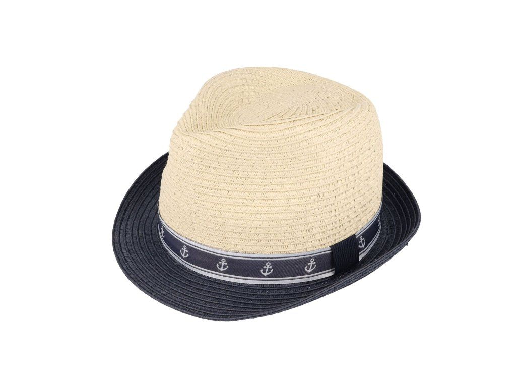 Chlapecký slaměný klobouk Maximo – trilby námořnický s kotvami