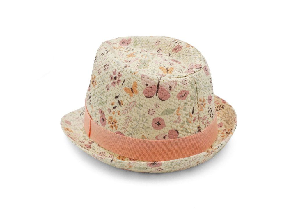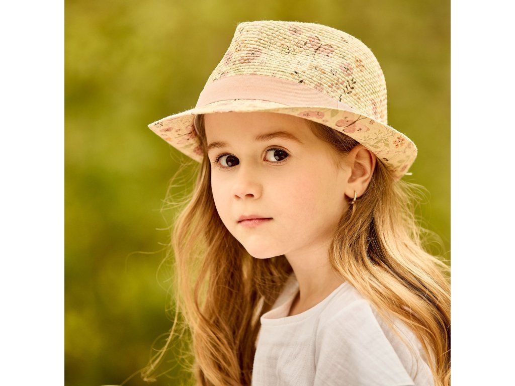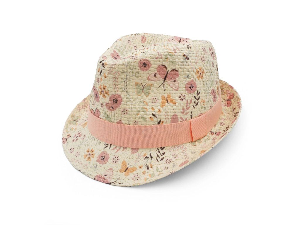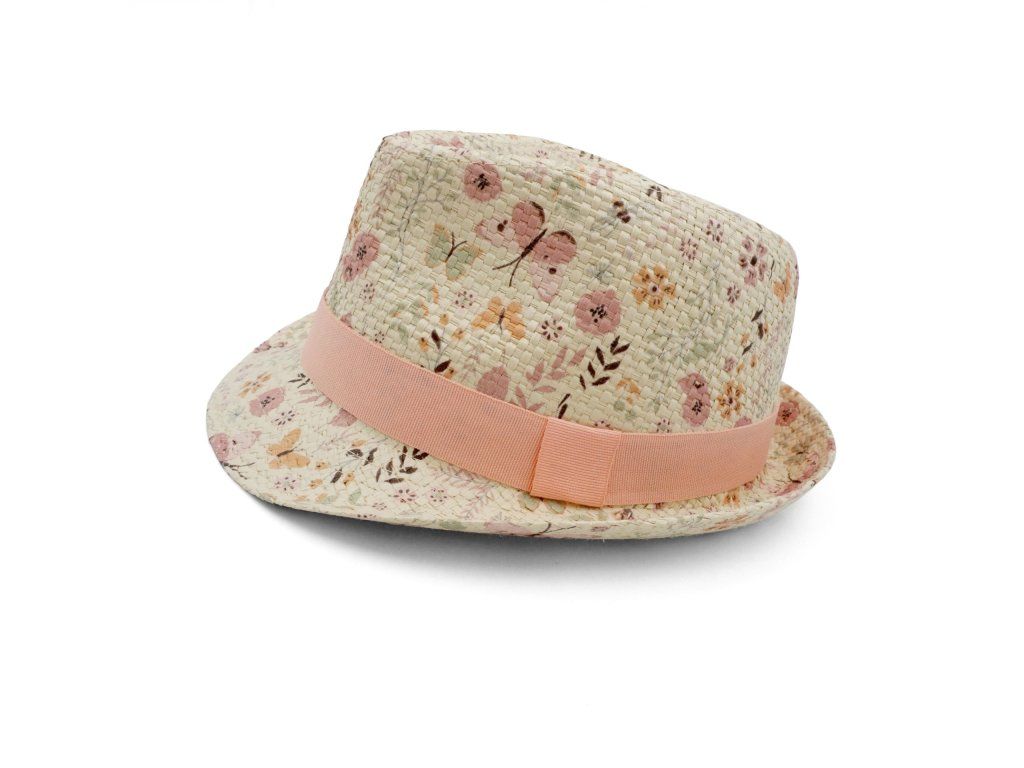 Dívčí letní klobouk Maximo – slaměný trilby s květinami a motýly