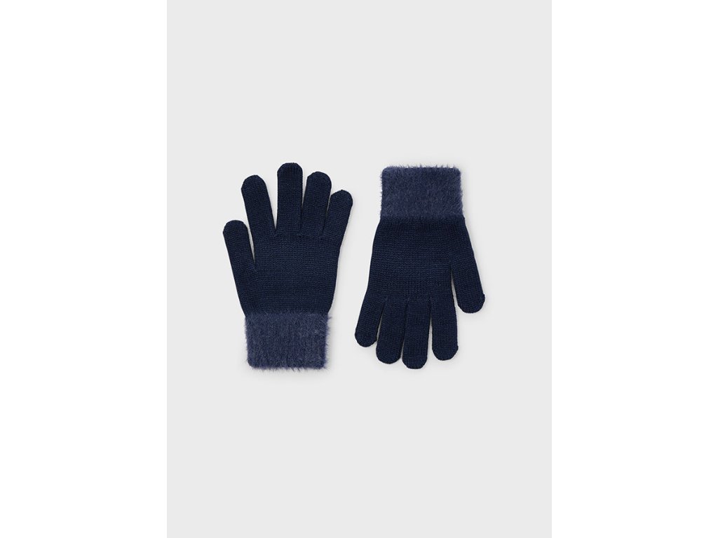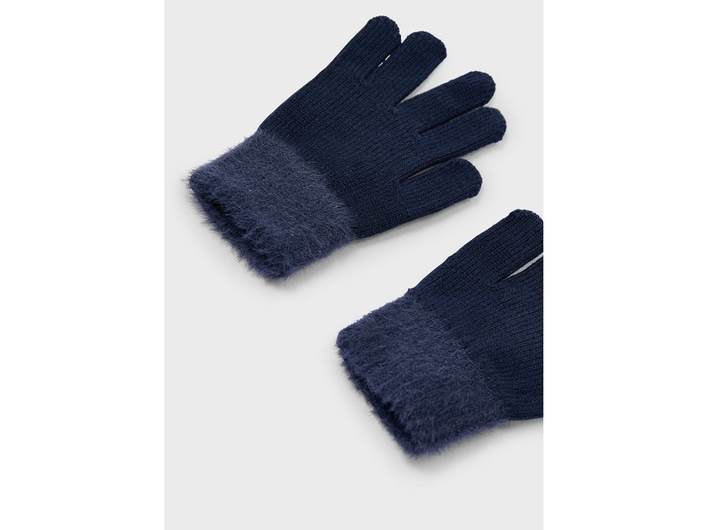 Stylové dívčí rukavice Mayoral v elegantní tmavě modré barvě zahřejí a zároveň krásně doplní zimní outfit. Pletený materiál je příjemný na dotek a díky chlupatému lemu působí hravě a originálně. Praktický a pohodlný doplněk na chladné dny.