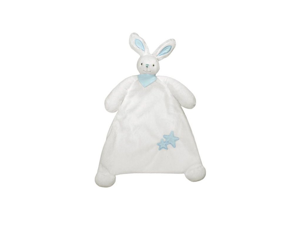 Hebké dětské muchláček – králíček Maximo v jemné bílo-modré barvě je ideální první mazlící hračka pro miminka. Měkké plyšové provedení a roztomilý design s hvězdičkami pomáhají dětem cítit se bezpečně a uklidňují je při usínání.