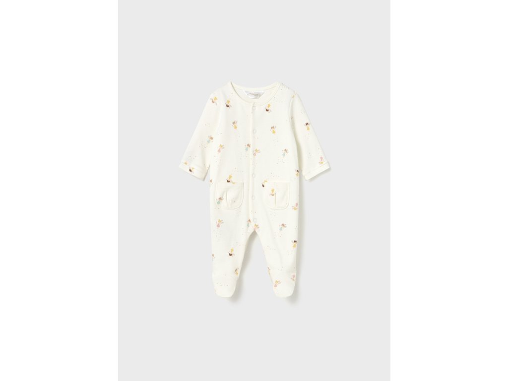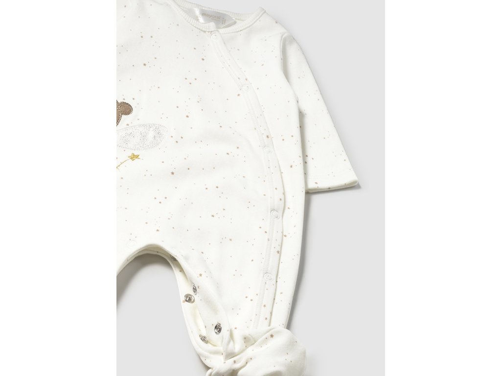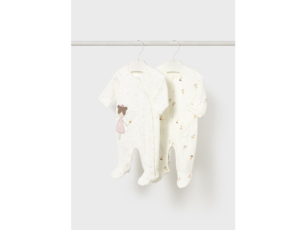 Roztomilá sada dvou overalů Mayoral pro holčičky. Praktické pyžamo s dlouhým rukávem a nožičkami v jemné bílé barvě, ozdobené potiskem víly a hvězdiček. Díky měkké bavlně zajistí pohodlí po celou noc. Skvělé jako dárek pro miminko.