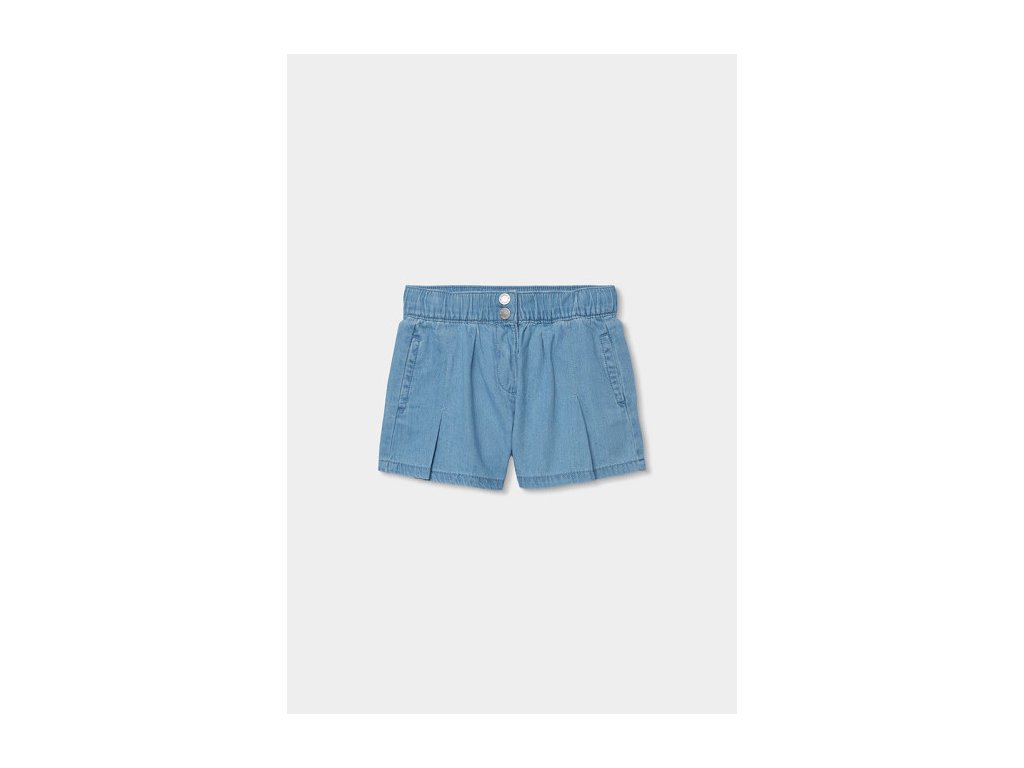 Kraťasy mají elastický pas s knoflíky, který zajišťuje pohodlné nošení a snadné oblékání. Nechybí ani praktické kapsya jemné sklady, které dodávají kraťasům stylový vzhled.