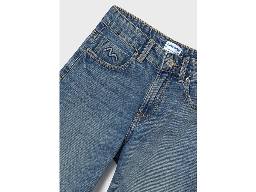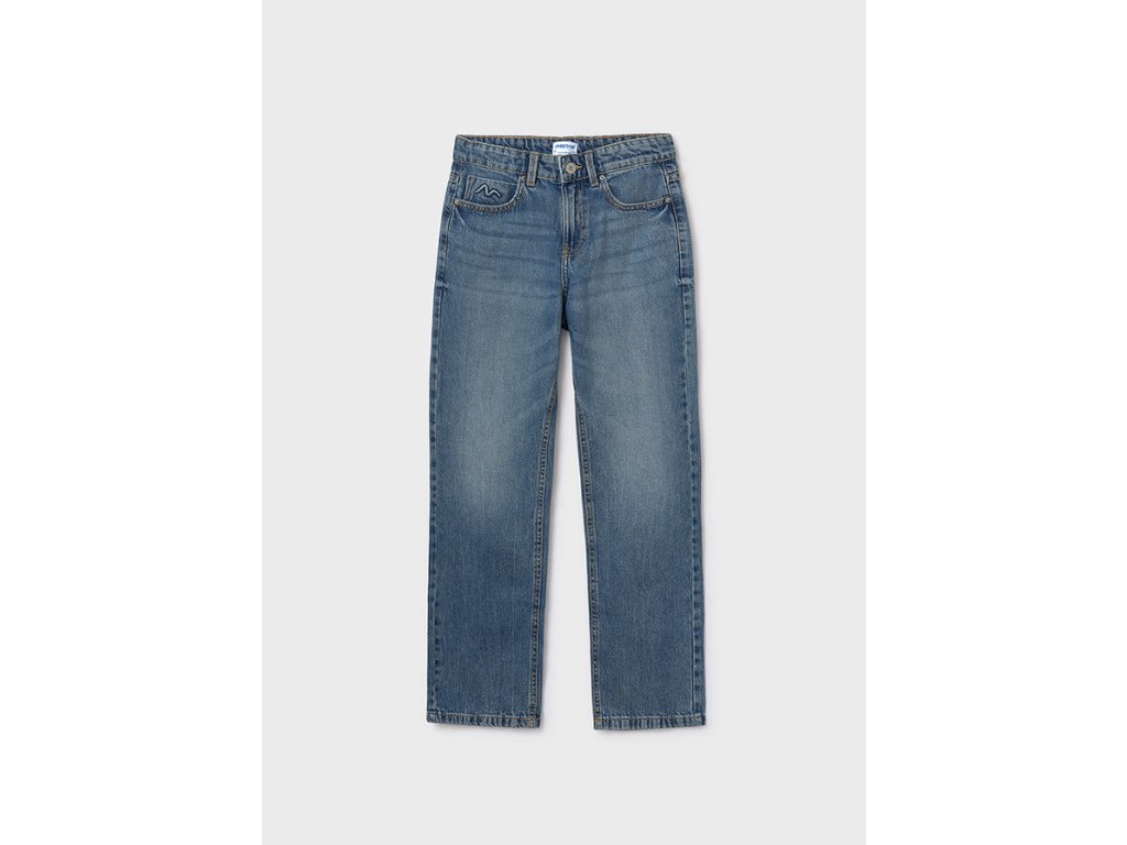 Stylové dívčí džíny Mayoral v klasickém modrém odstínu, ideální pro každodenní nošení i volný čas. Pohodlný rovný střih s tradičním pětikapsovým designem zaručuje maximální komfort i volnost pohybu. Džíny jsou vyrobeny ze 100 % bavlny, díky čemuž jsou příjemné na dotek a zároveň odolné.