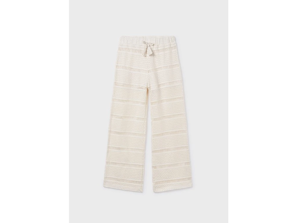 Elegantní dívčí kalhoty Mayoral ve smetanové barvě okouzlí jemným krajkovým vzorem a lehkostí, která je ideální pro teplé dny 🤍