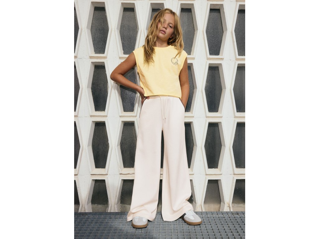 Stylové dívčí teplákové kalhoty Mayoral v elegantním smetanovém odstínu jsou ideální volbou pro pohodlné každodenní nošení i volnočasové outfity. Díky modernímu střihu s rovnými nohavicemi působí velmi trendy a zároveň poskytují maximální komfort.