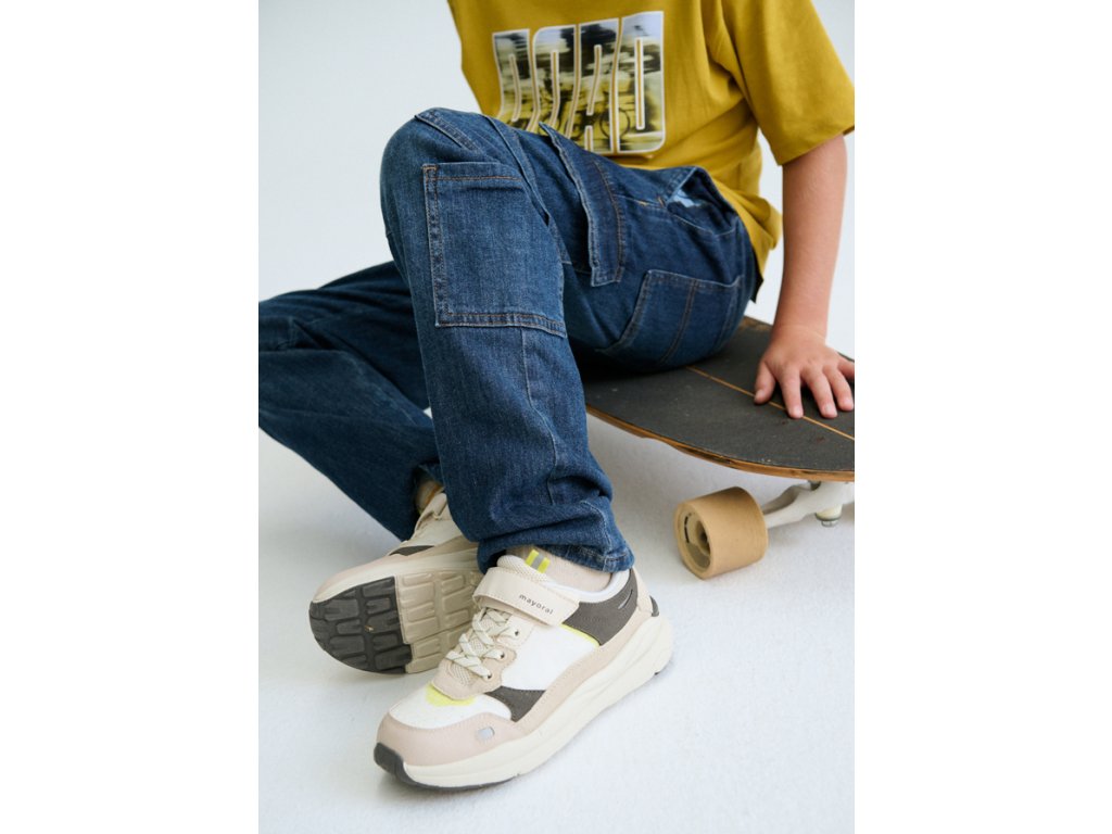 Stylové chlapecké cargo džíny Nukutavake jsou ideální volbou pro každodenní nošení. Moderní střih doplňují praktické kapsy na nohavicích, které dodávají kalhotám trendy vzhled i funkčnost. Díky kombinaci bavlny, polyesteru a elastanu jsou džíny pohodlné, příjemně pružné a skvěle se přizpůsobí pohybu. Perfektní k tričku i mikině pro ležérní městský outfit.