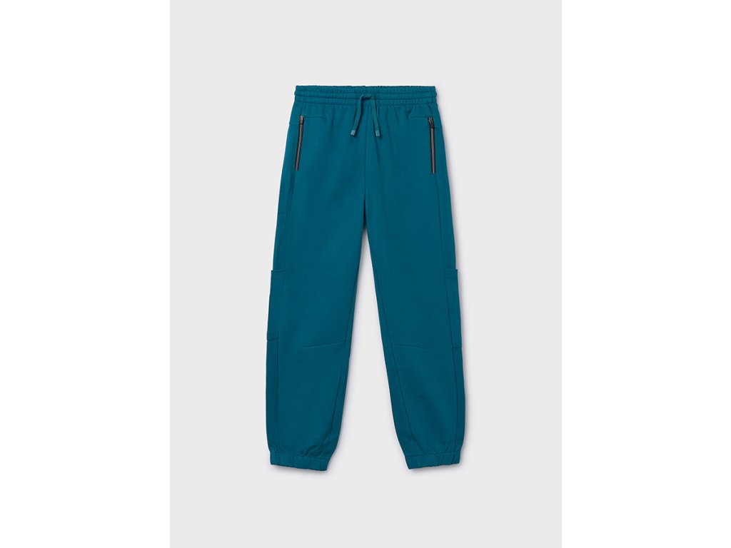 Nukutavake chlapecké tepláky petrolové s kapsami na zip