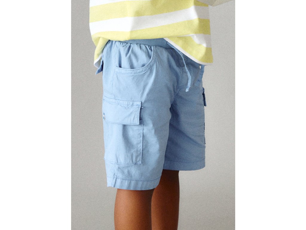 Stylové chlapecké cargo kraťasy Mayoral v moderním modrém odstínu jsou ideální volbou pro letní dobrodružství. Pohodlný střih s pružným pasem a stahovací šňůrkou zajišťuje perfektní přizpůsobení a maximální komfort při nošení.
