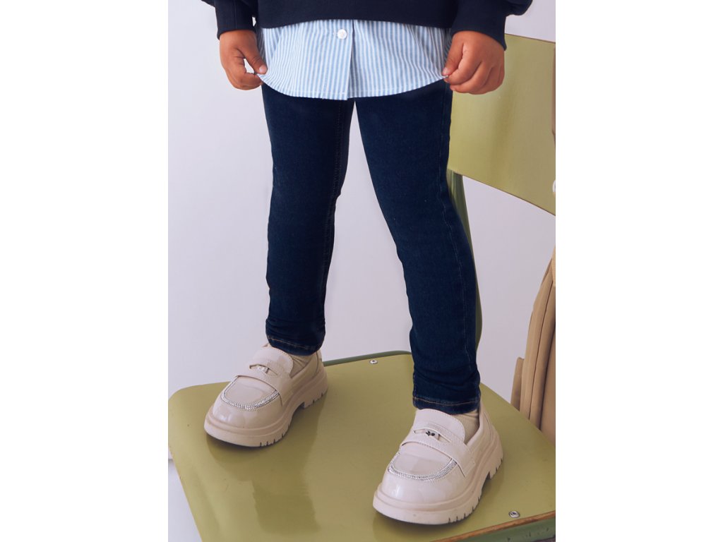 Pohodlné dívčí jegginy Mayoral v klasické tmavě modré barvě jsou ideální pro každodenní nošení. Vyrobené ze směsi 70 % bavlny, 28 % polyesteru a 2 % elastanu, skvěle padnou, neomezují v pohybu a zároveň si drží tvar. Stylový základ šatníku, který se hodí k tričkům, mikinám i elegantnějším topům.