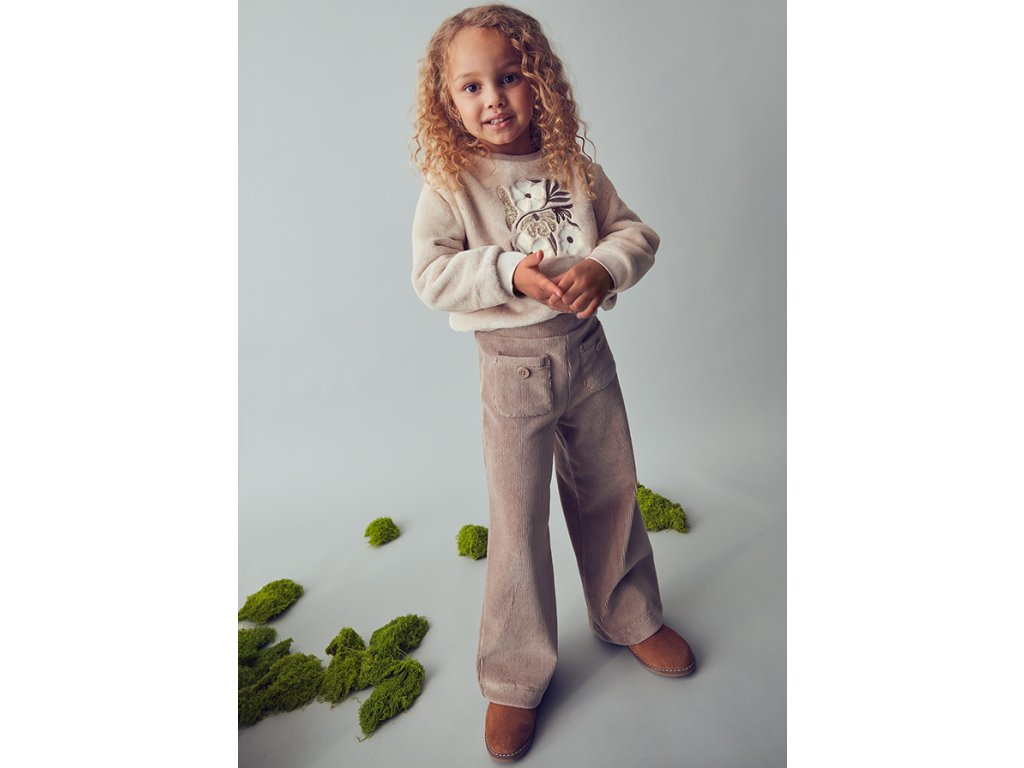 Stylové dívčí kalhoty Mayoral v béžovém odstínu jsou ušity z jemného manšestru, který je nejen pohodlný, ale také trendy. Díky volnějšímu střihu a pružnému pasu se kalhoty skvěle nosí po celý den. Praktické přední kapsy s ozdobnými knoflíky dodávají originální vzhled a jsou i funkčním prvkem.