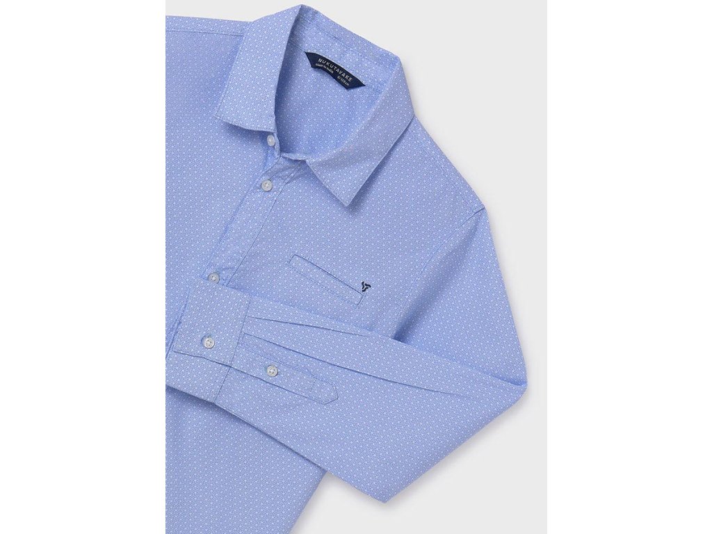 Vyrobena z 100 % měkké bavlny, která je jemná na pokožku a skvěle prodyšná pro celodenní nošení. Elegantní střih se zapínáním na knoflíky, límeček a decentní kapsička na hrudi doplňují promyšlený design. Jednoduchý vzor a přírodní barvy se hodí jak k džínsům, tak společenským kalhotám. Vhodná volba pro školní slavnosti i rodinné focení – vždy s noblesou a pohodlím.