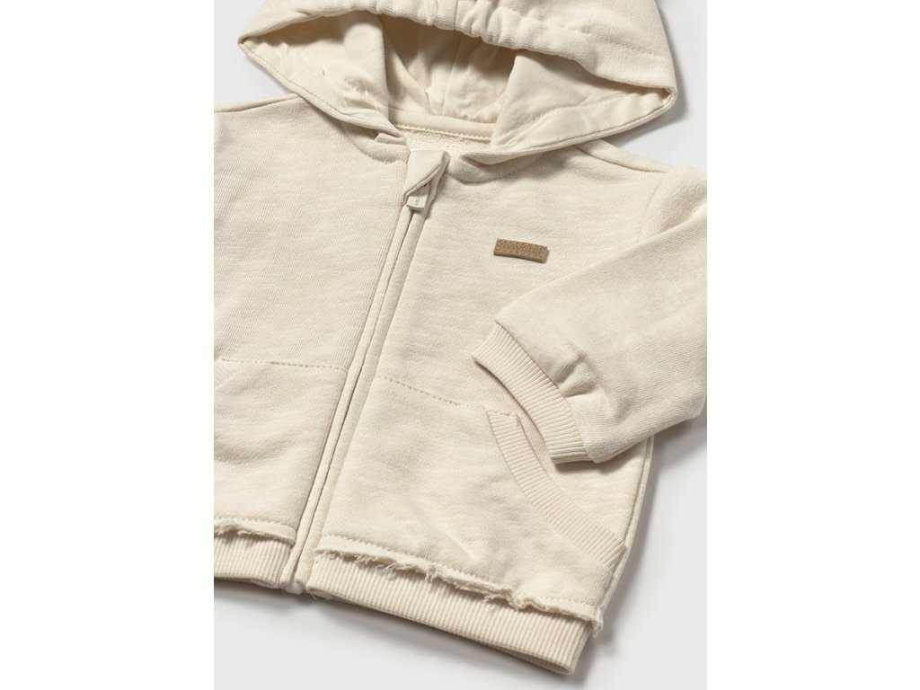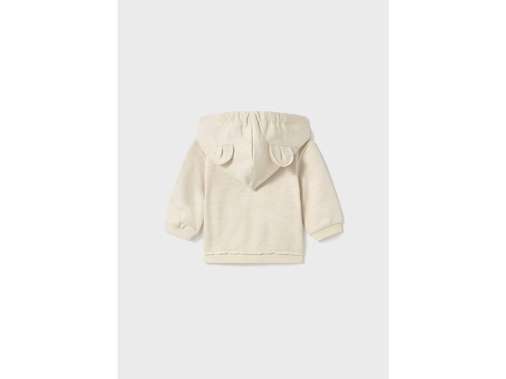 Tato krémová miminkovská mikina Mayoral s kapucí a oušky je dokonalým spojením pohodlí a roztomilého stylu pro vaše nejmenší. Vyrobená z příjemného 99 % bavlny a 1 % elastanu, zaručuje jemný dotek na citlivé dětské pokožce a zároveň lehkou pružnost pro volnost pohybu.