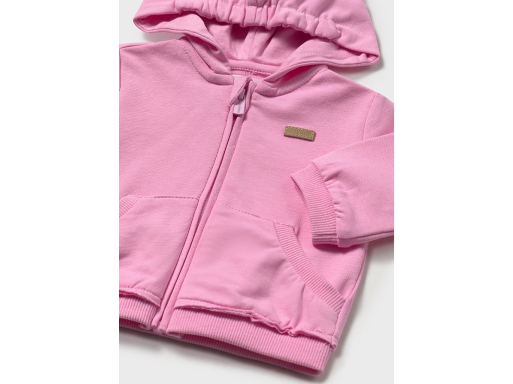 Tato růžová mikina Mayoral je vyrobena z měkkého a elastického cotton stretch materiálu (95 % bavlna + 5 % elastan), který se přizpůsobí pohodlně každému hýčkání.