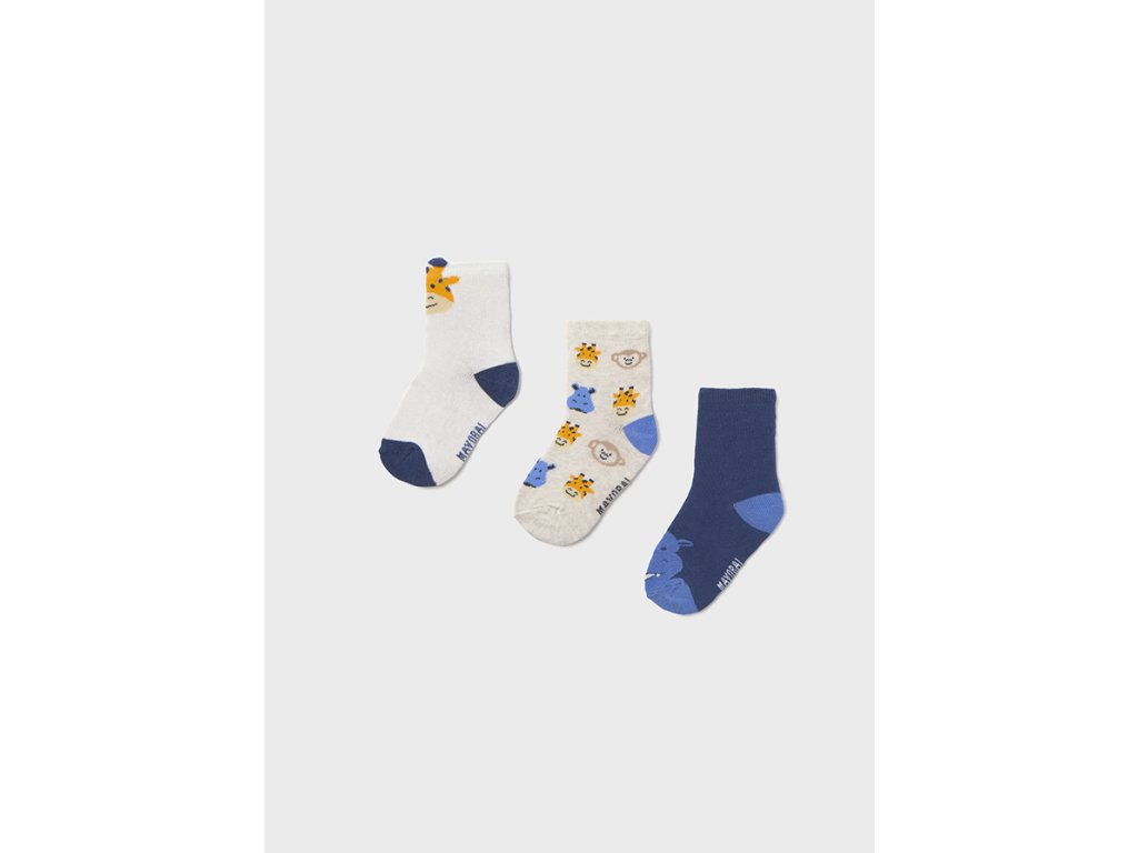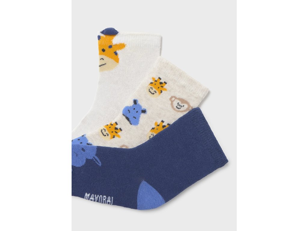 Mayoral dětské ponožky 3 ks se zvířátky modré a béžové