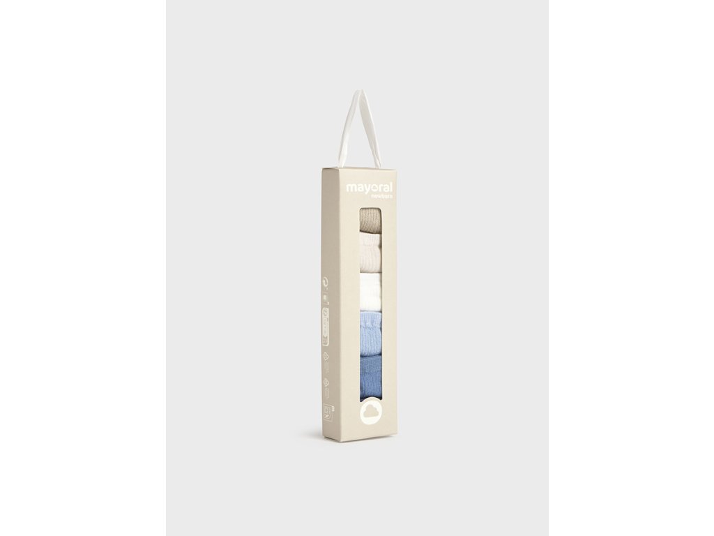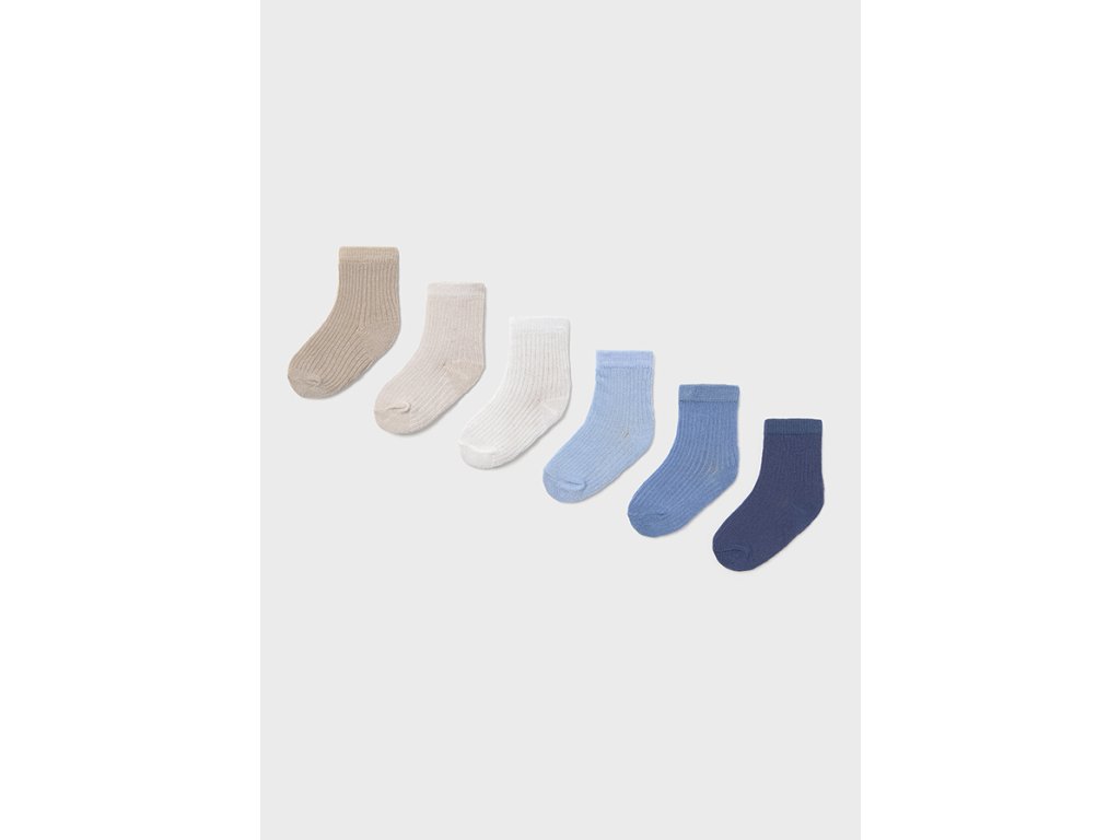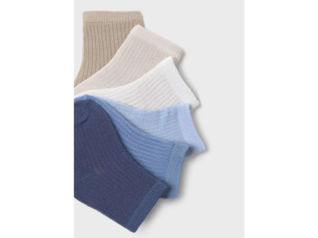 Praktická sada dětských ponožek Mayoral v jemném modro-béžovém ladění. Ponožky jsou nejen stylové, ale především maximálně pohodlné. Díky vysokému podílu viskózy jsou příjemně měkké, prodyšné a hebké na dotek. Příměs elastanu zajišťuje pružnost, takže ponožky dobře drží na noze a netlačí.