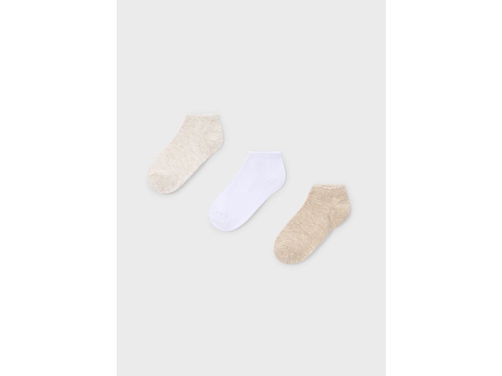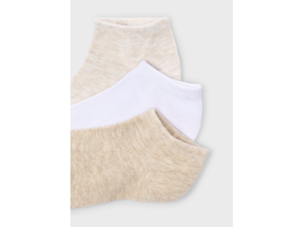 Praktický set dětských kotníkových ponožek Mayoral obsahuje 3 páry v neutrálních barvách – béžové a bílé. Díky jednoduchému designu jsou ponožky unisex, takže se hodí pro holky i kluky a snadno se kombinují s každým outfitem.