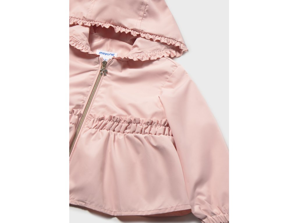 Stylová dívčí bunda Mayoral v jemné lososové barvě je ideální volbou pro jarní a podzimní dny. Lehký materiál zajišťuje pohodlí při nošení, zatímco kapuce, zapínání na zip a ozdobné řasení v pase dodávají bundě dívčí a elegantní vzhled. Elastické zakončení rukávů pomáhá chránit před větrem a chladnějším počasím.