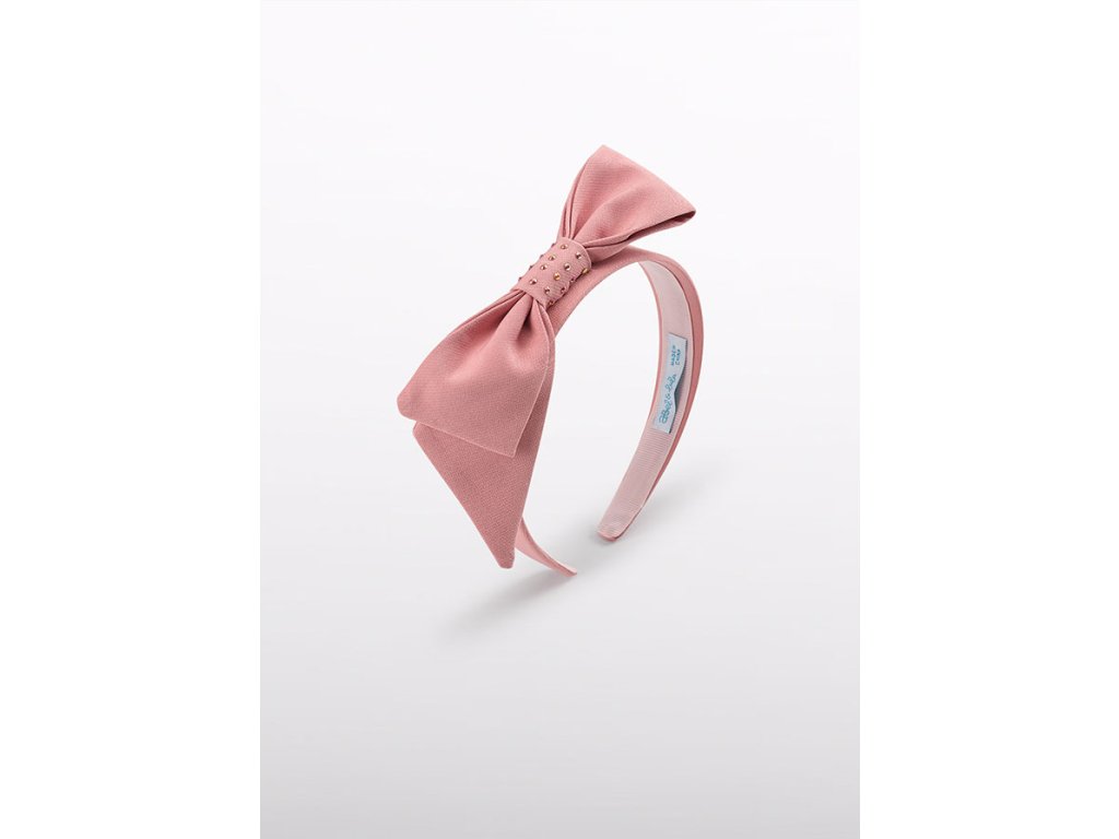 Elegantní dívčí čelenka Abel & Lula v jemném růžovém odstínu je dokonalým doplňkem ke slavnostním šatům. Dominantní velká mašle dodává modelu romantický a výrazný vzhled, zatímco jemné zlatavé kamínky uprostřed působí luxusně a slavnostně.