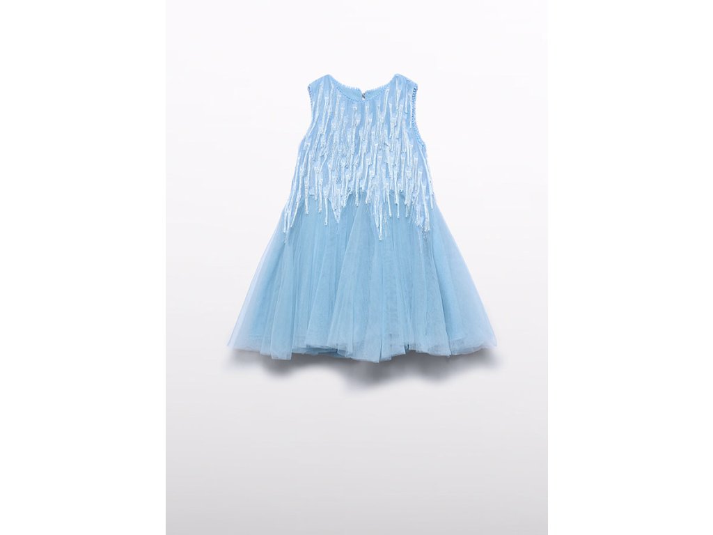 Okouzlující slavnostní šaty Abel & Lula jsou jako stvořené pro výjimečné okamžiky. Jemná modrá barva v kombinaci s nadýchanou tylovou sukní působí něžně, elegantně a doslova pohádkově. Horní část šatů zdobí efektní třásně, které dodávají modelu luxusní a nepřehlédnutelný vzhled.
