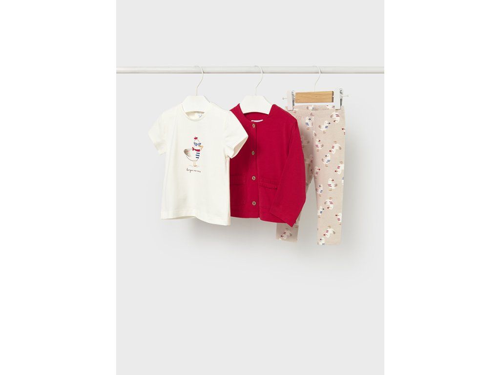 Nádherný dívčí set Mayoral je ideální volbou pro malé slečny, které chtějí být stylové a zároveň v pohodlí ❤️. Set obsahuje tričko s roztomilým motivem ptáčka, elastické legíny s veselým potiskem a elegantní krátký cardigan v krásné červené barvě.