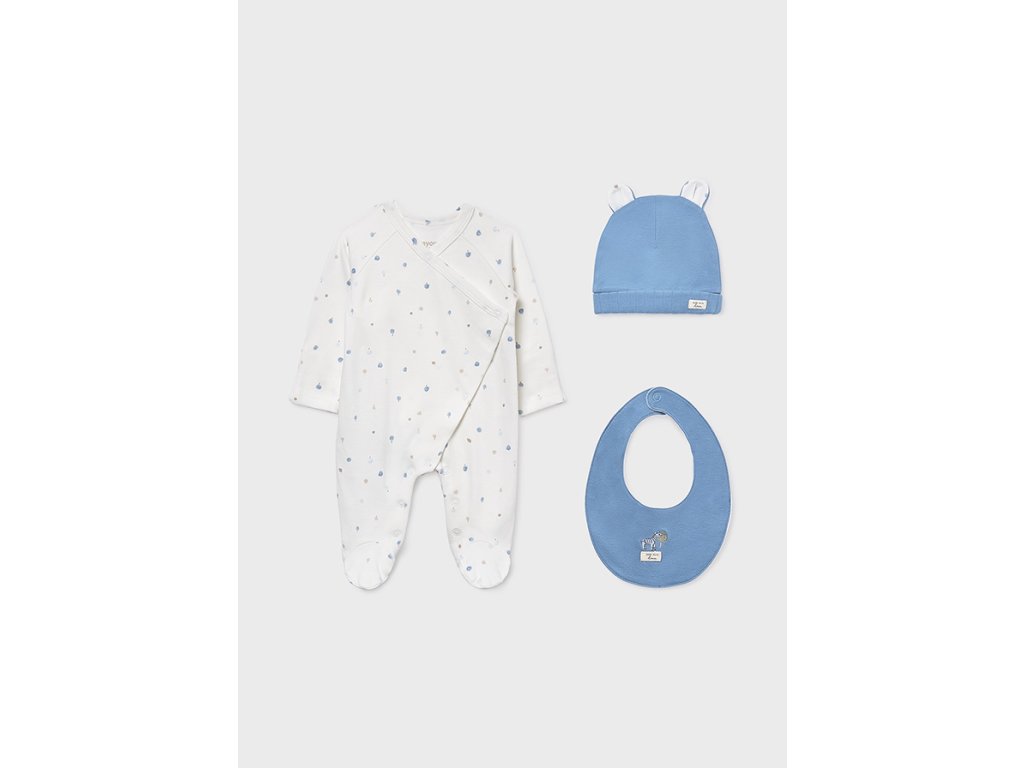 Baby unisex 3dílný dárkový set Mayoral – pyžamo, čepička a bryndák