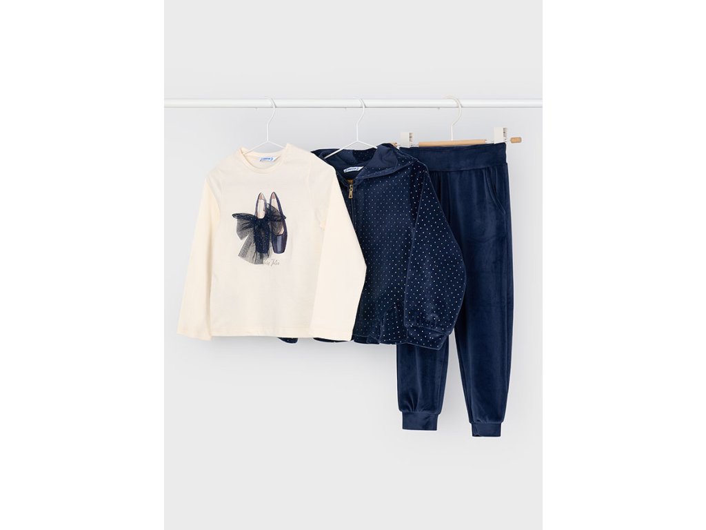 🌟 Pohodlný střih, příjemný materiál a lesklé detaily dělají z této soupravy Mayoral oblíbený outfit malých slečen.