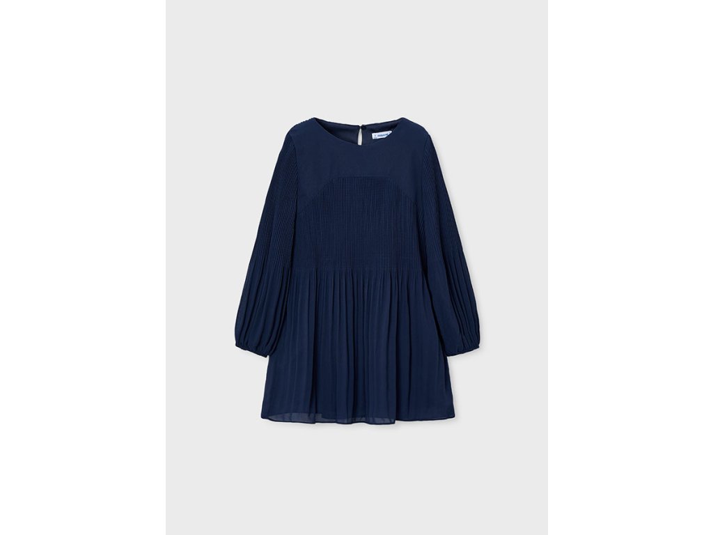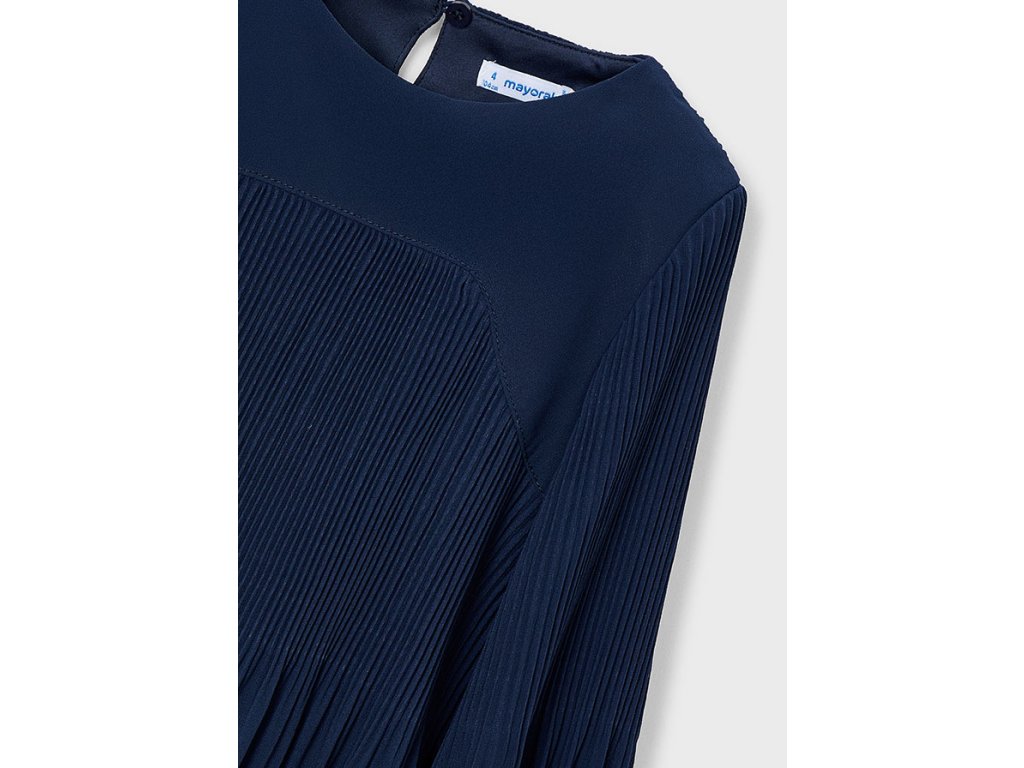Elegantní dívčí šaty Mayoral v tmavě modré barvě s jemným plisováním. Šaty mají dlouhý rukáv, kulatý výstřih a vzdušný střih, který zajistí pohodlí při každé slavnostní příležitosti. Díky decentnímu designu jsou ideální na oslavy, školní akce i sváteční chvíle. Kvalitní zpracování zaručuje pohodlné nošení i snadnou údržbu.