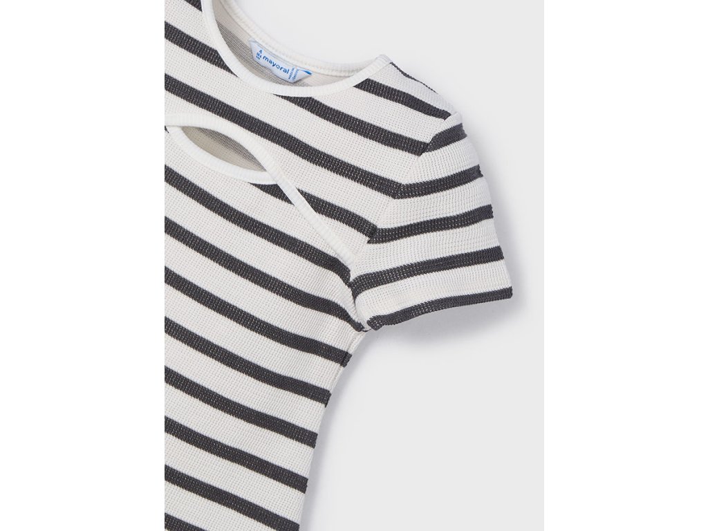 Stylové a pohodlné dívčí šaty od značky Mayoral s moderním pruhovaným vzorem. Díky svému ležérnímu střihu jsou ideální na každodenní nošení i speciální příležitosti.