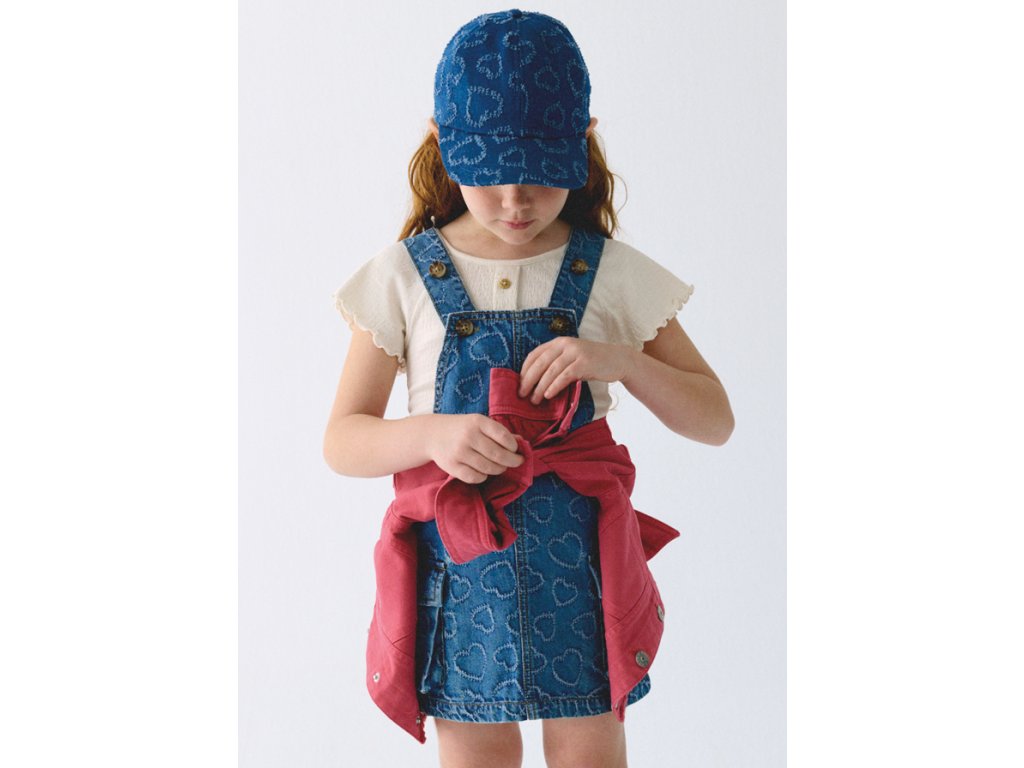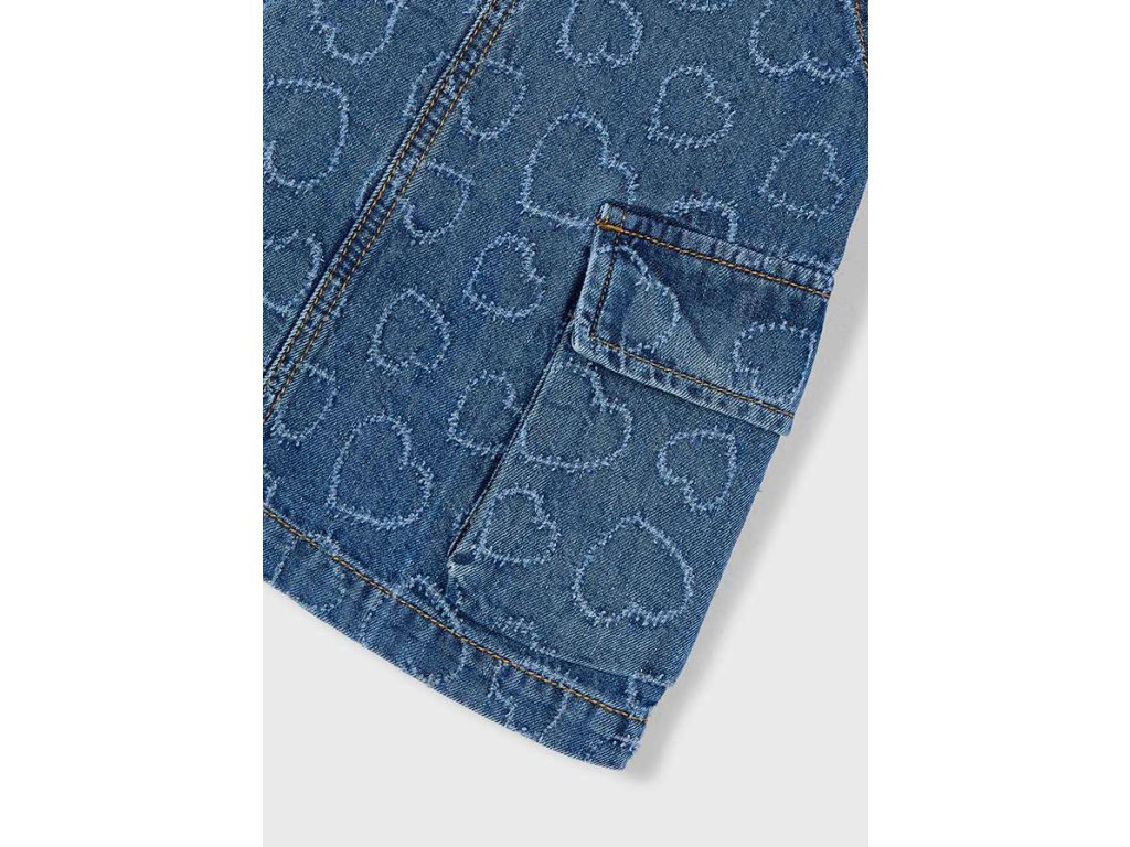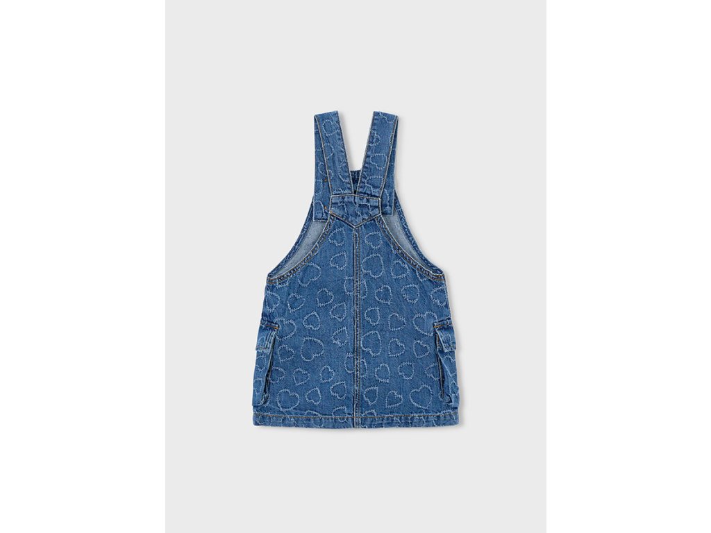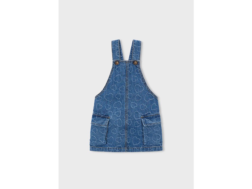 Roztomilé dívčí džínové šaty Mayoral v podobě laclové sukně zaujmou krásným vzorem jemných srdíček, který dodává celému modelu hravý a stylový vzhled. Tento nadčasový džínový kousek je ideální pro každodenní nošení do školky, školy i na výlety.
