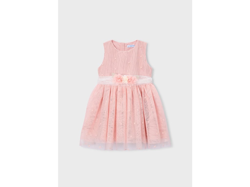 Mayoral dívčí slavnostní šaty s tylovou sukní a květinovým páskem