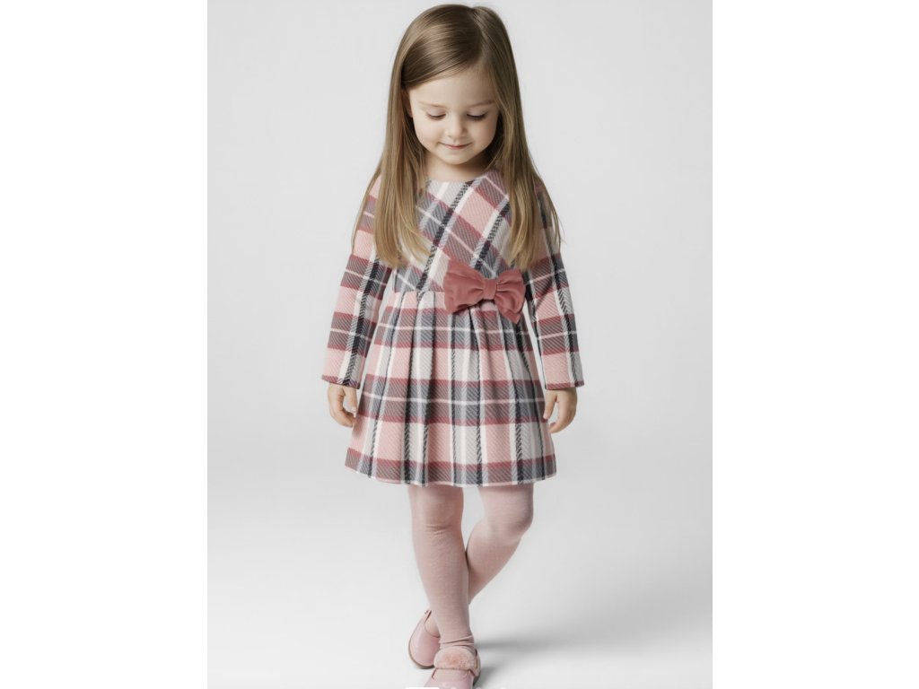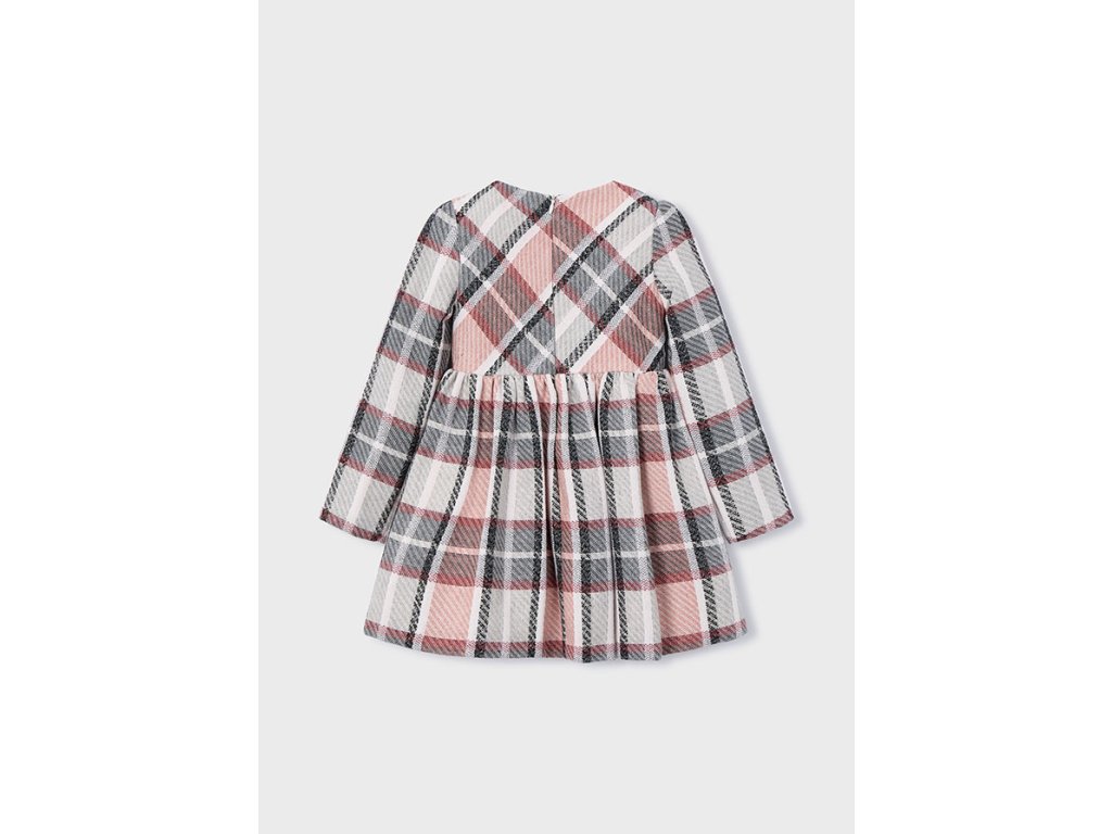 Stylové dívčí šaty Mayoral v moderním kostkovaném vzoru v kombinaci růžové, šedé a bílé barvy. Šaty mají dlouhý rukáv, áčkový střih a ozdobnou sametovou mašli v pase, která dodává celému modelu jemně slavnostní vzhled. Vyrobeny z kvalitní směsi polyesteru, akrylu, bavlny, vlny, viskózy a metalického vlákna, podšité 100% bavlnou pro maximální pohodlí. Perfektní volba na podzimní oslavy, školní akce i sváteční příležitosti.