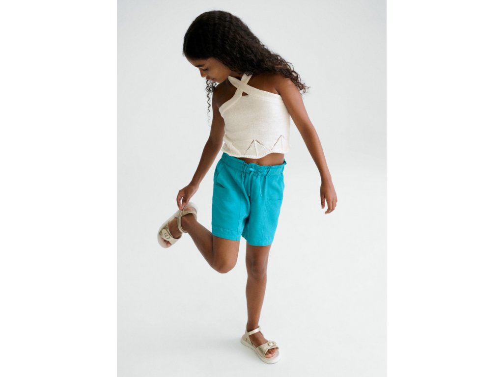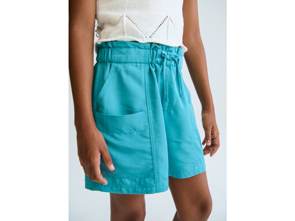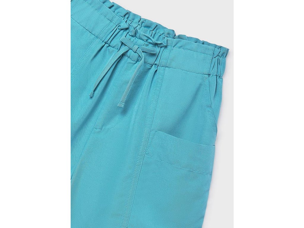 Stylové dívčí šortky Mayoral v nádherné tyrkysové barvě jsou ideální volbou pro teplé jarní i letní dny. Lehký a příjemný materiál zajišťuje maximální komfort při nošení, zatímco pružný pas se šňůrkou umožňuje perfektní přizpůsobení postavě.