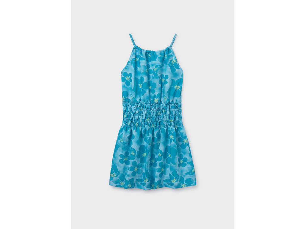 Mayoral dívčí letní šaty na ramínka s květinovým potiskem tyrkysové