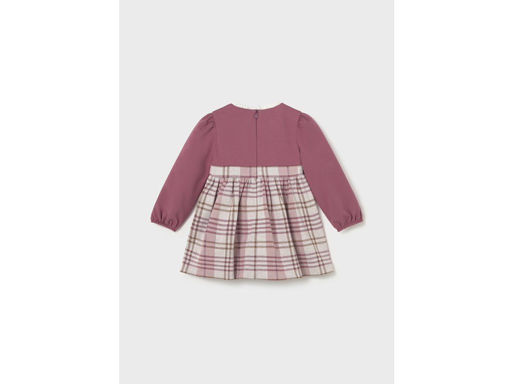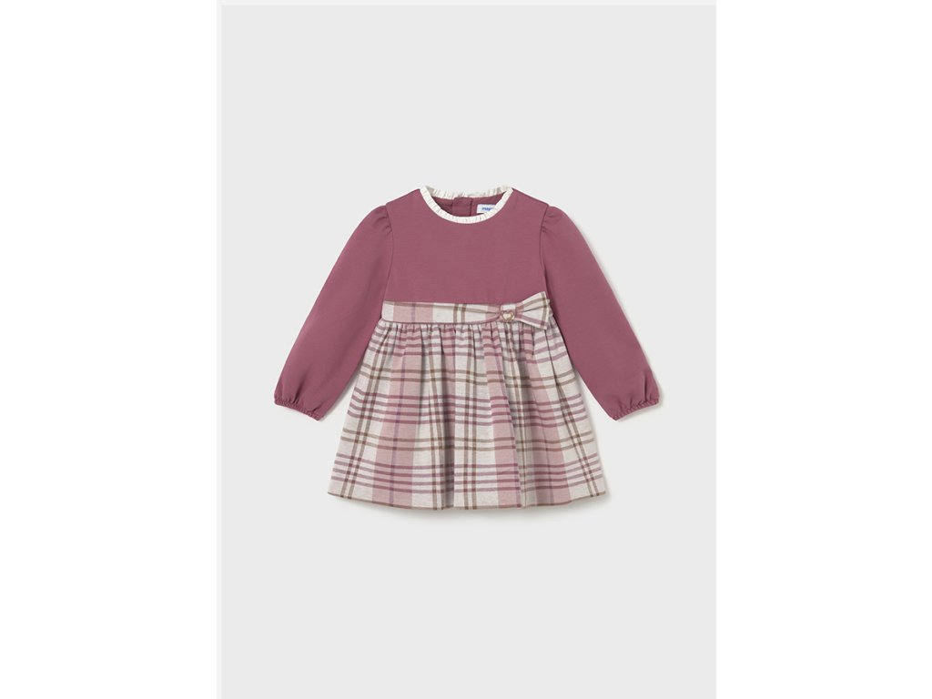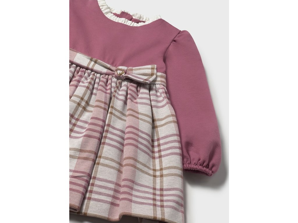 Elegantní dívčí šaty Mayoral v kombinaci růžového živůtku a kostkované sukně s ozdobnou mašličkou. Díky dlouhým rukávům a příjemnému bavlněnému podšívání jsou ideální na podzimní i zimní dny, školní slavnosti i rodinné oslavy. Pohodlný střih zajistí volnost pohybu a stylový vzhled.