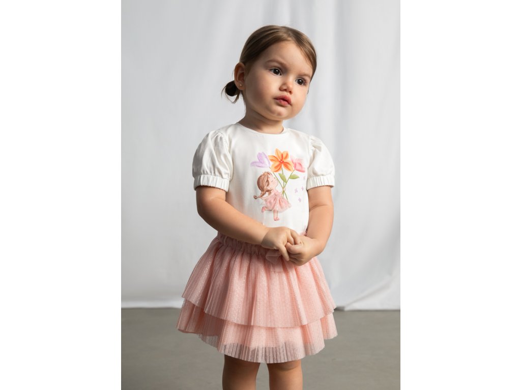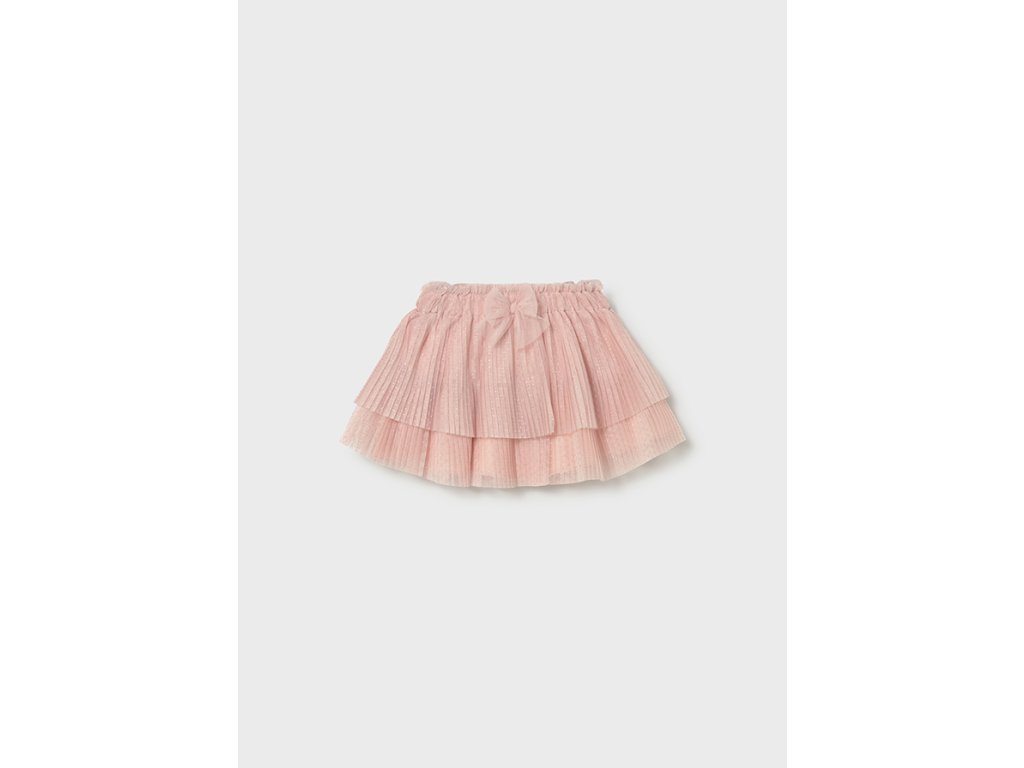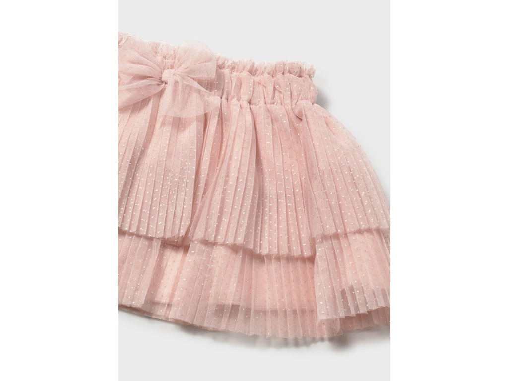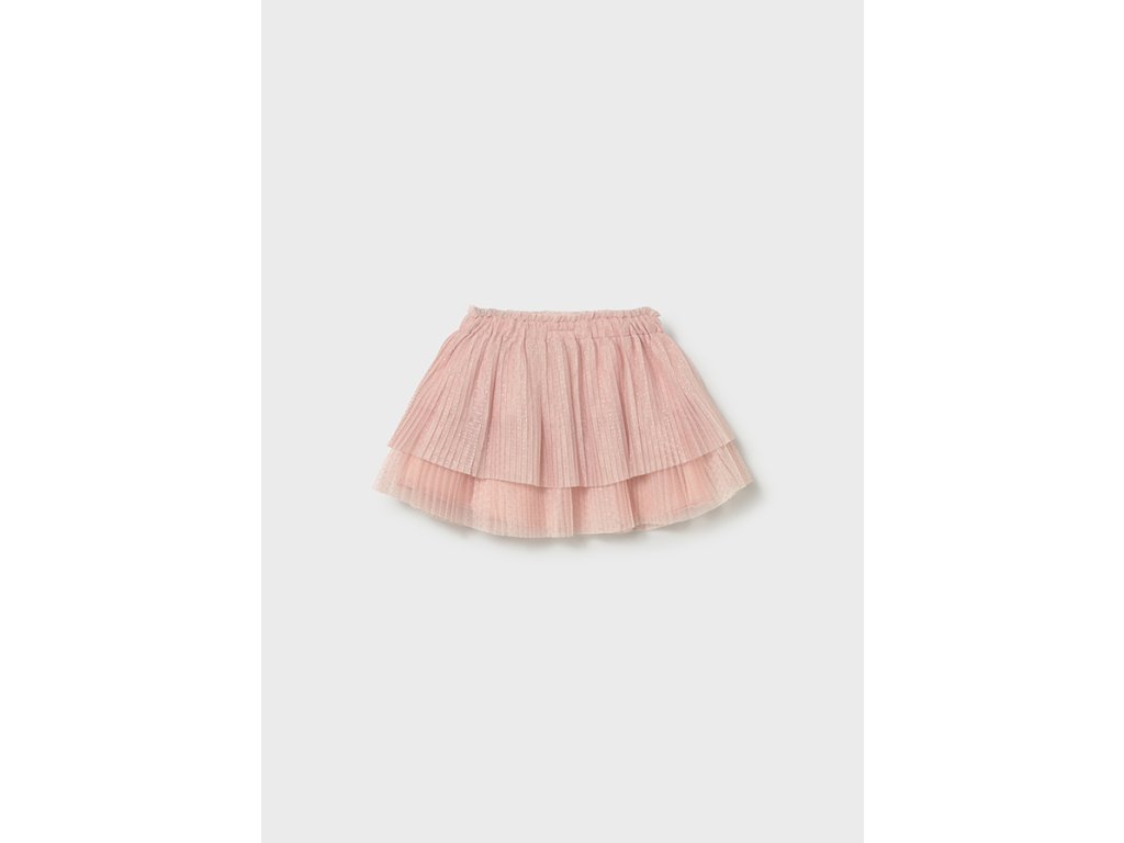 Kouzelná dívčí tylová sukně Mayoral v jemném růžovém odstínu rozzáří každý slavnostní i běžný outfit malé princezny. Sukně má více vrstev jemného tylu s drobnými třpytivými puntíky, které jí dodávají lehkost a elegantní vzhled.