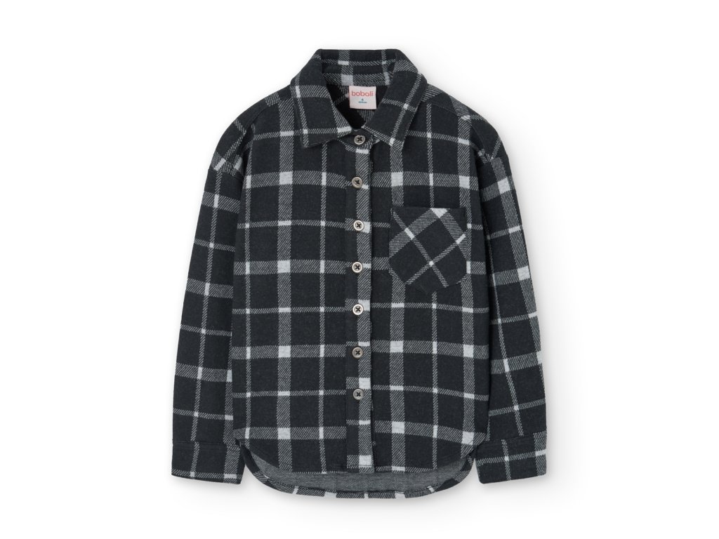 Černá kostkovaná košile Boboli se zapínáním na knoflíky.