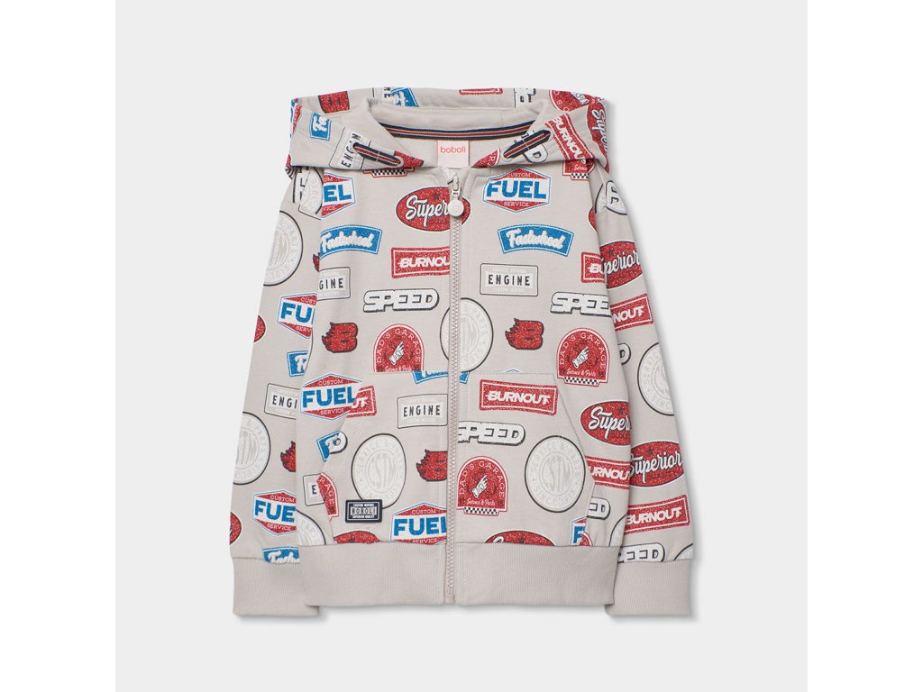 Boboli chlapecká mikina na zip s kapucí – béžová s potiskem