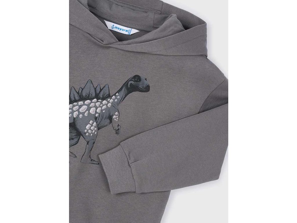 Chlapecká šedá mikina s kapucí a potiskem dinosaura Mayoral