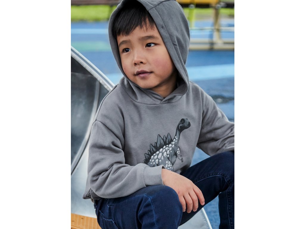 Stylová chlapecká mikina Mayoral v moderní šedé barvě s kapucí a originálním potiskem dinosaura na přední straně. Vyrobena z příjemného materiálu (99% bavlna, 1% elastan), který zaručuje pohodlí při každodenním nošení. Ideální do školy, na hřiště i volný čas. Skvělá volba pro malé dobrodruhy, kteří milují dinosaury! 🦖