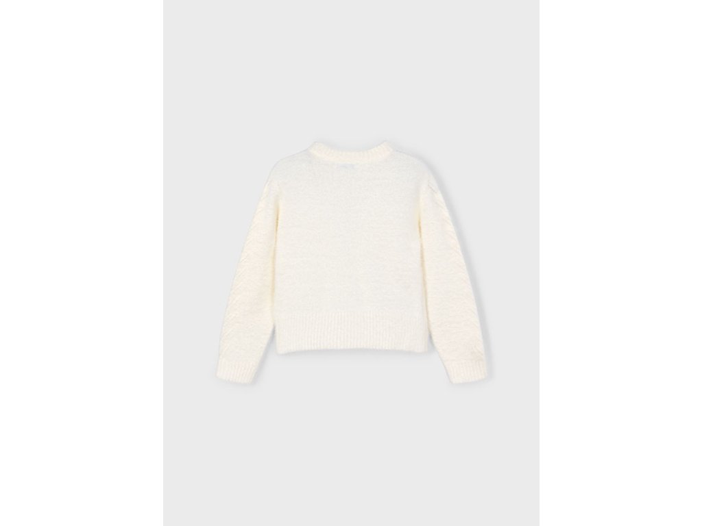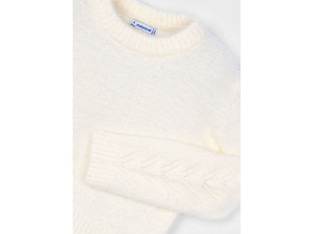 Elegantní dívčí svetr Mayoral v jemné bílé barvě je ideálním kouskem do chladnějších dnů. Měkký úplet je příjemný na dotek a poskytuje pohodlí po celý den. Stylové detaily na rukávech dodávají svetru originální vzhled, díky čemuž se skvěle hodí jak k sukni, tak k džínům nebo legínám.