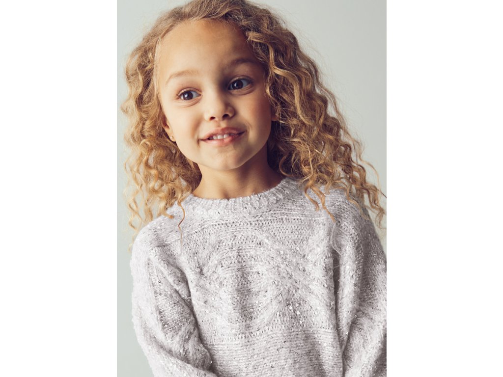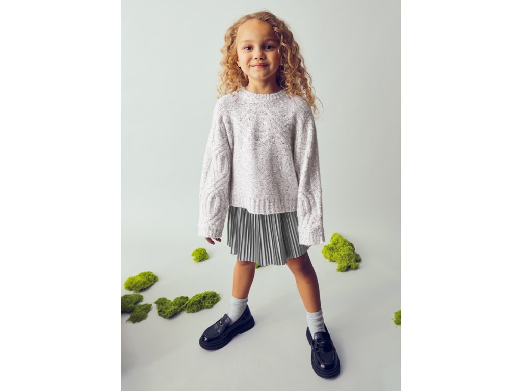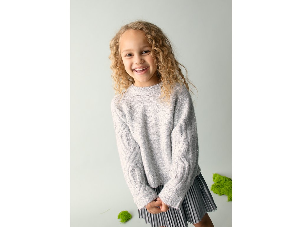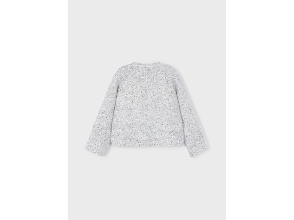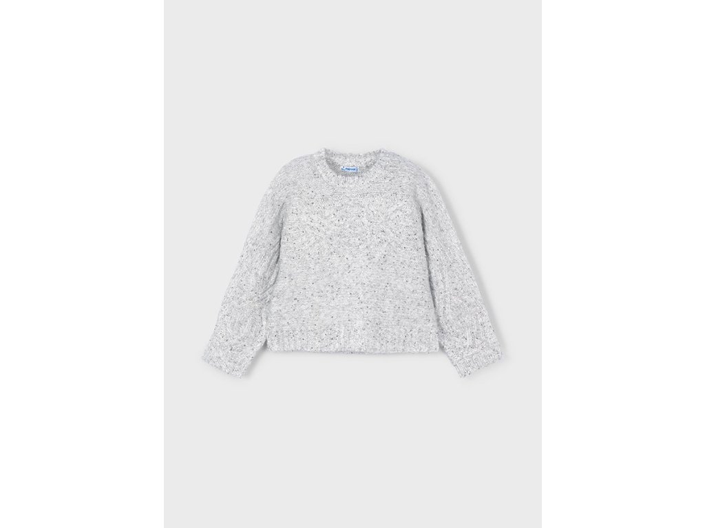 Stylový dívčí svetr Mayoral v šedé barvě s jemným pleteným vzorem a třpytivými flitry. Pohodlný a hřejivý kousek, ideální na chladnější dny do školy i na volný čas. Vyrobený z kvalitní směsi materiálů pro maximální komfort a dlouhou životnost.