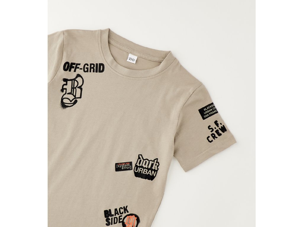Stylové chlapecké tričko iDO v moderní béžové barvě zaujme originálními potisky v urban stylu. Díky výrazným grafickým detailům a nápisům působí velmi trendy a je ideální volbou pro kluky, kteří mají rádi moderní a pohodlnou módu.