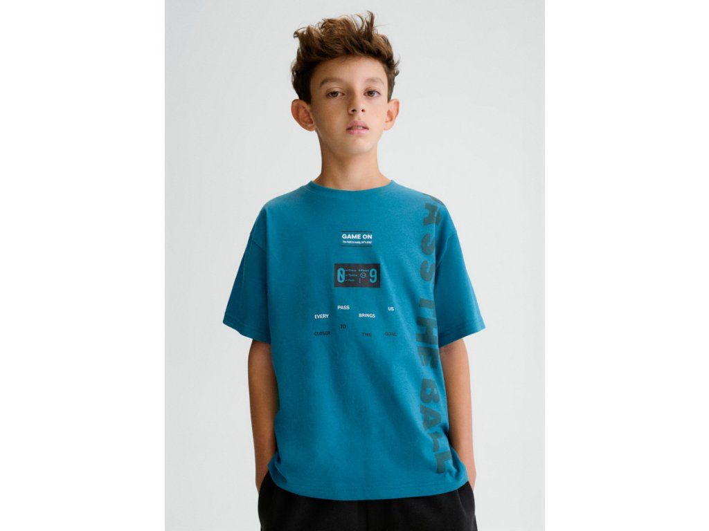 Stylový potisk „GAME ON“ a grafické prvky inspirované hrou dodávají tričku dynamický a trendy vzhled. Díky výraznému nápisu na boku „PASS THE BALL“ působí tričko ještě více cool a originálně.