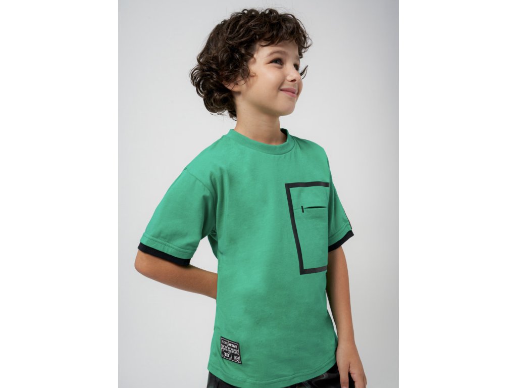 Zelené bavlněné klučičí tričko s krátkým rukávem a kapsičkou Nukutavake.