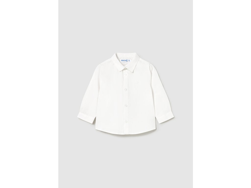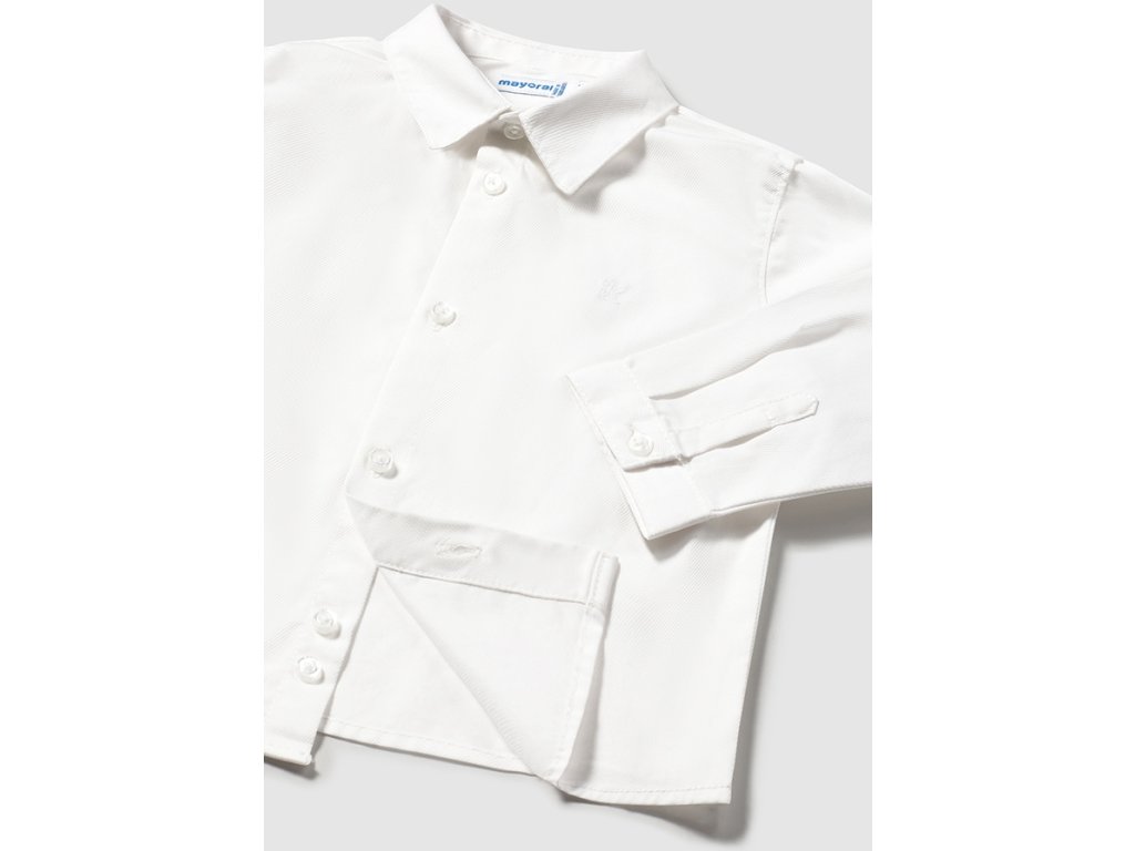 Tato bílá košile Mayoral z 100% bavlny je ideální volbou pro slavnostní události i formální chvíle. Klasický střih s límečkem a dlouhými rukávy doplňují jemné knoflíčky v tónu látky. Díky příjemnému přírodnímu materiálu je košile prodyšná a pohodlná po celý den – ať už ji děti obléknou k saku, vestě nebo jen tak k džínám.