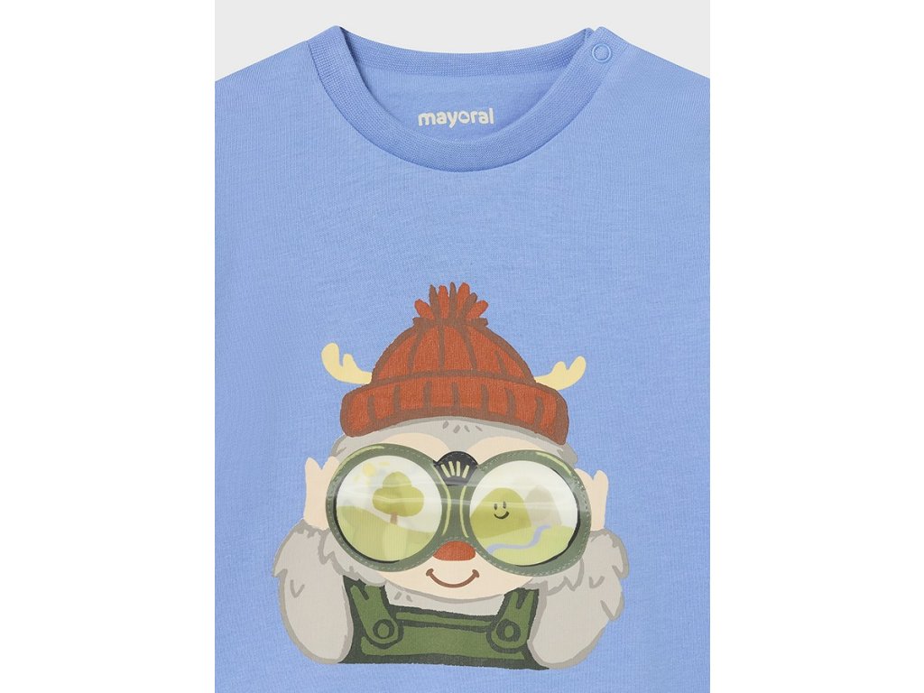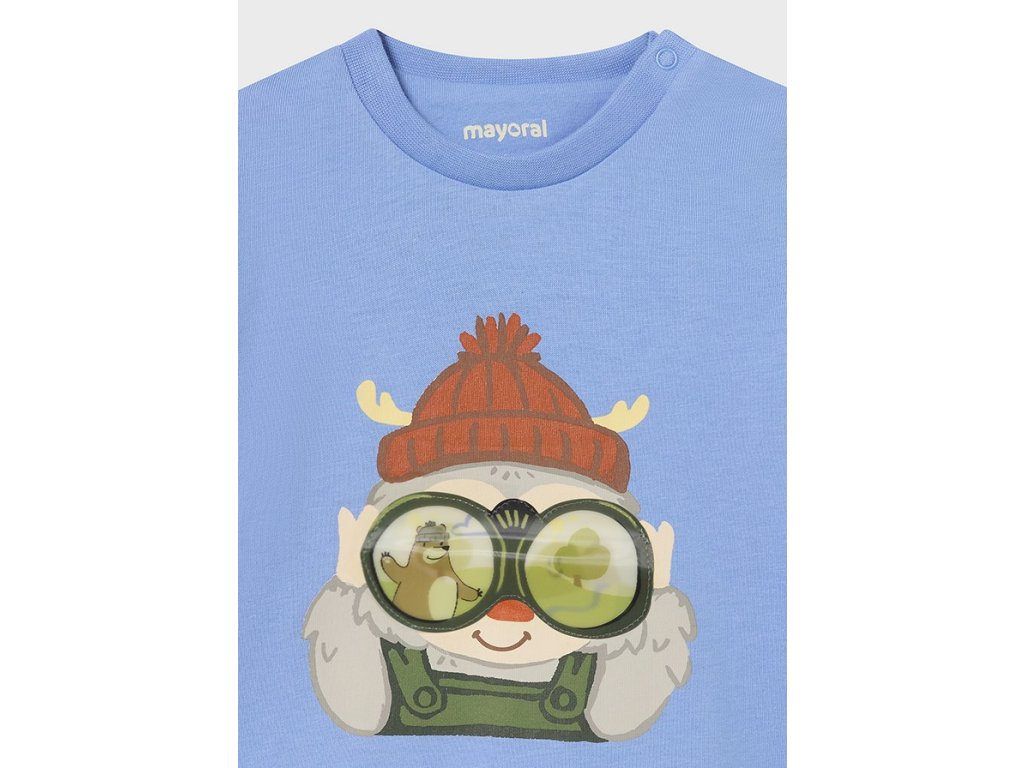 Modré tričko s dlouhým rukávem Mayoral s měnícím se obrázkem v dalekohledu.